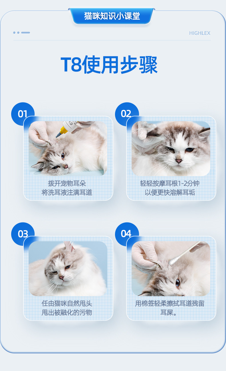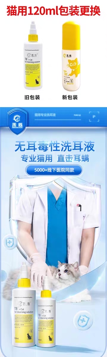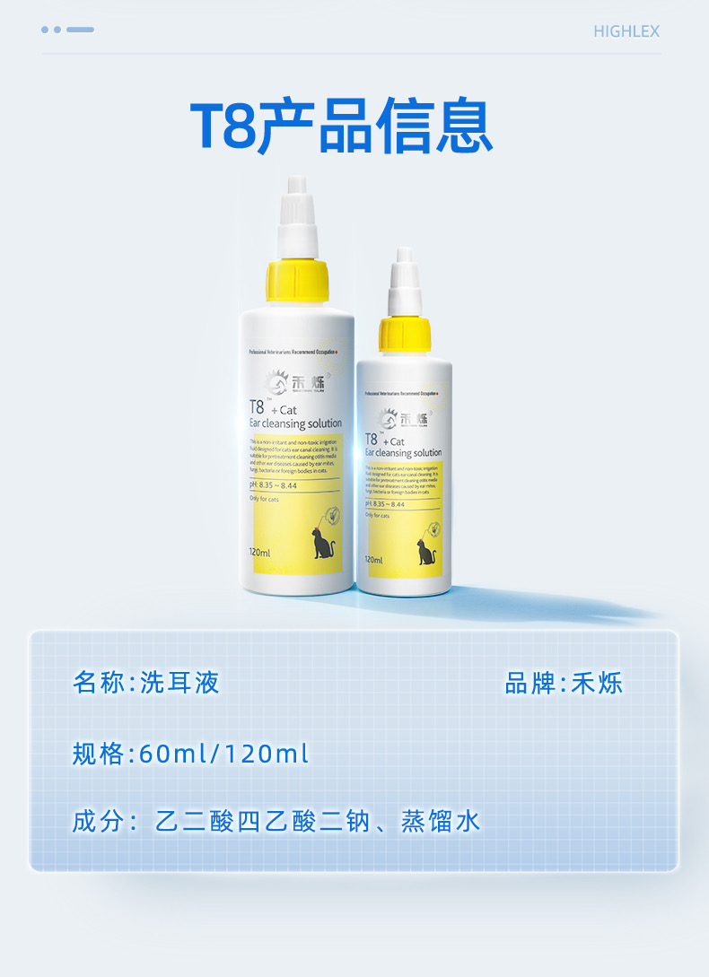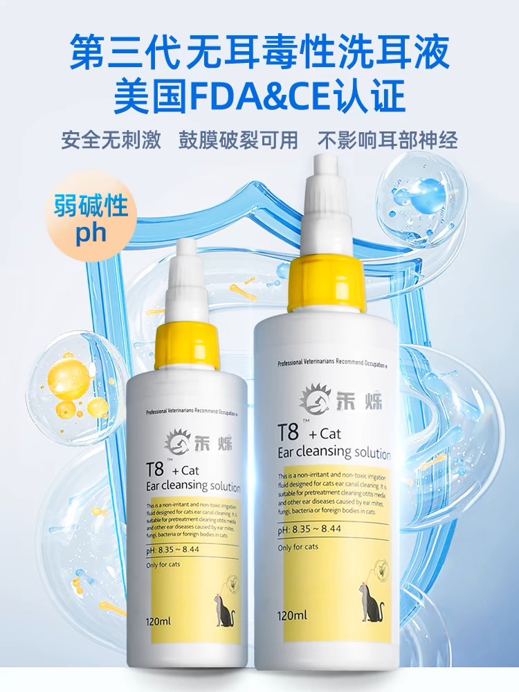 禾烁T8洗耳液 温和无刺激不含水杨酸 耳道清洁耳分泌物耳螨耳炎猫咪专用 80ml/瓶