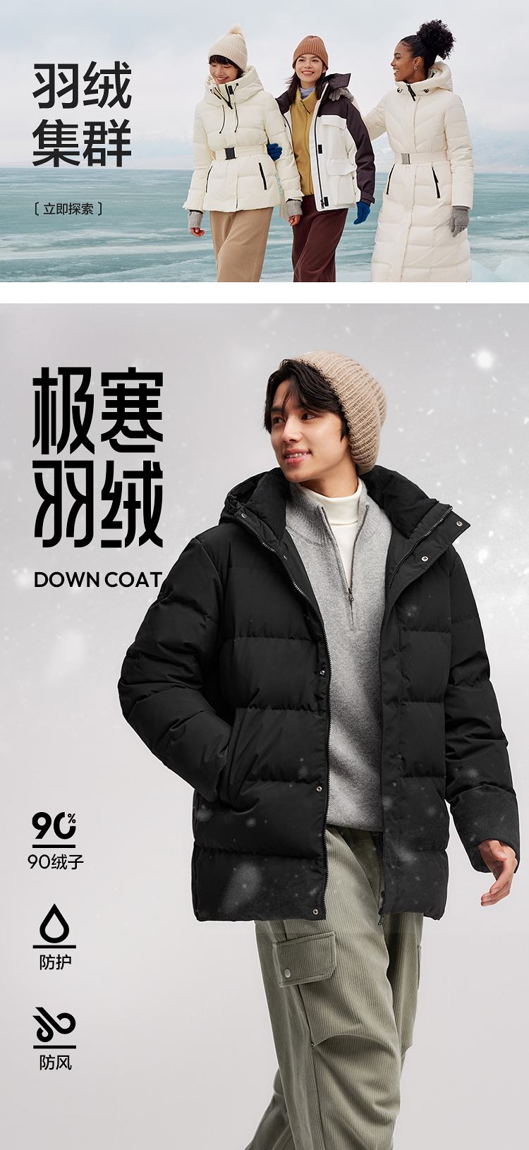 森马羽绒服男防风防水防油防污冬季新款连帽中长款外套厚百搭