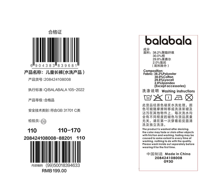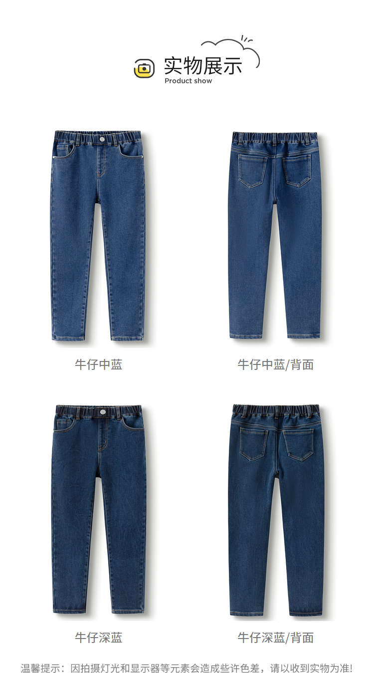 巴拉巴拉童装女童裤子冬装中大童加绒牛仔长裤儿童保暖舒适洋气潮
