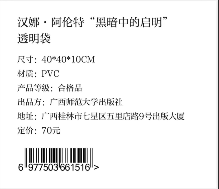 【现货】汉娜·阿伦特“黑暗中的启明”明暗袋 明暗之间,持光而行
