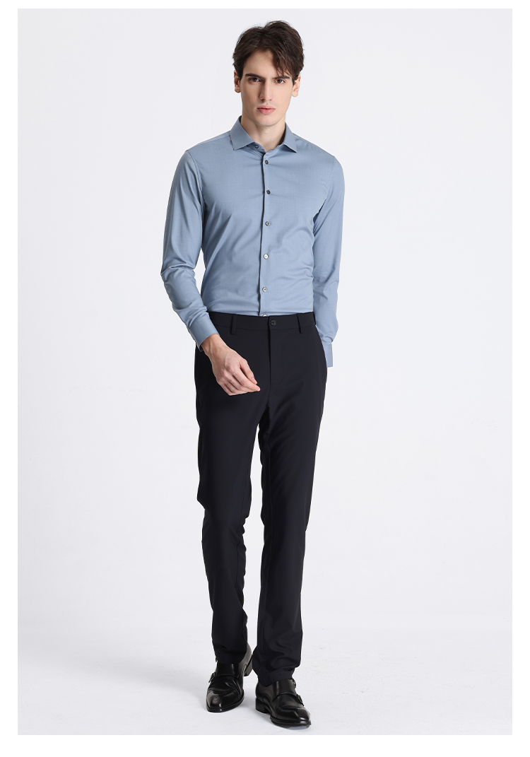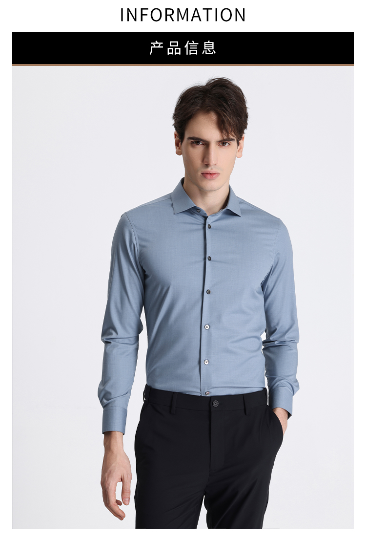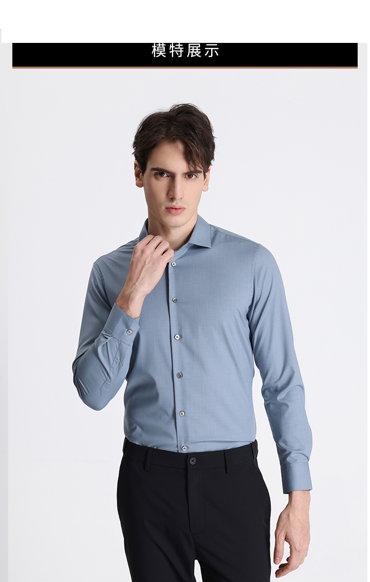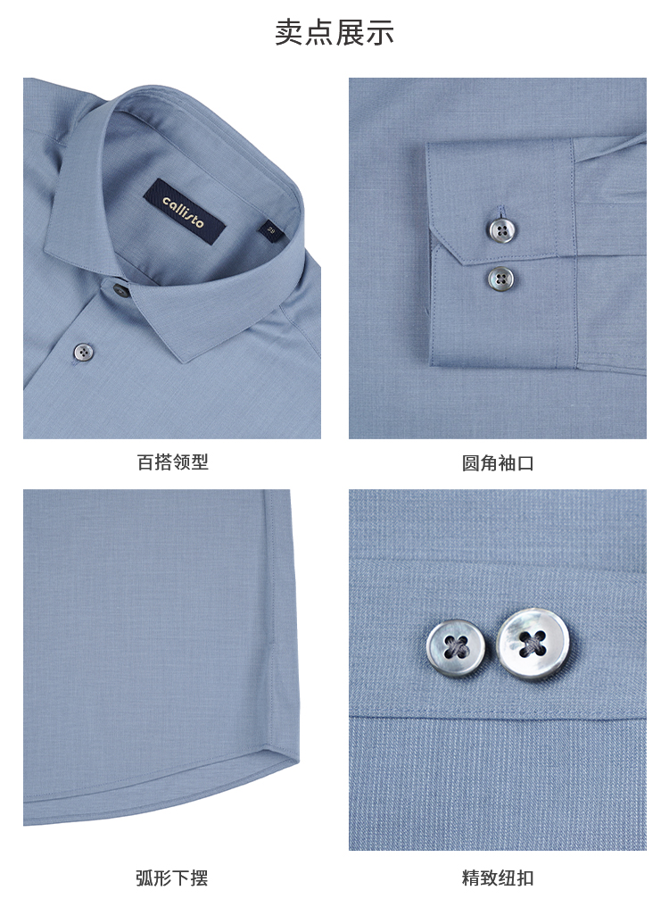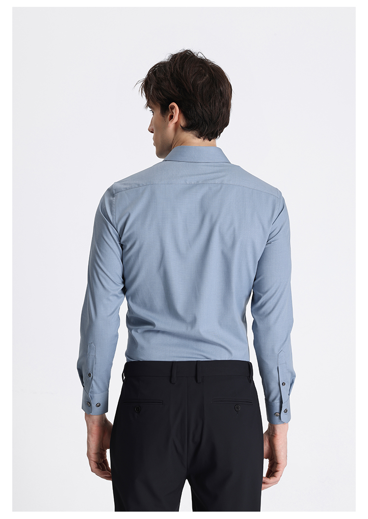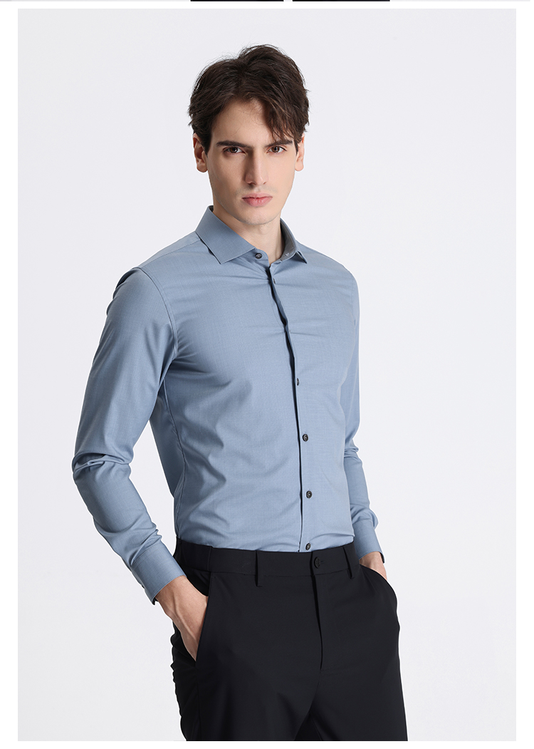 callisto蓝色莫代尔混纺长袖衬衫 STSTL061C