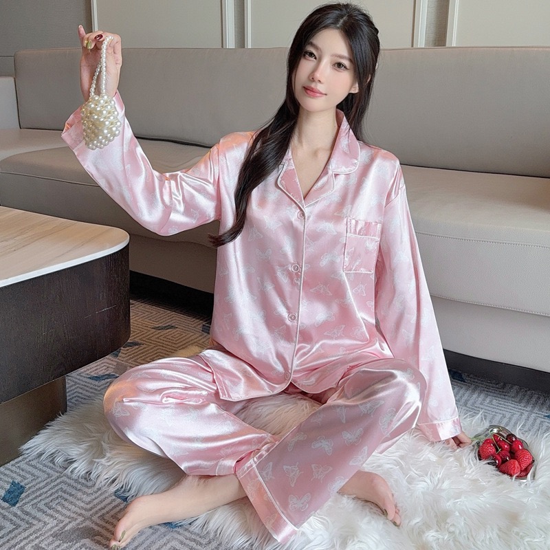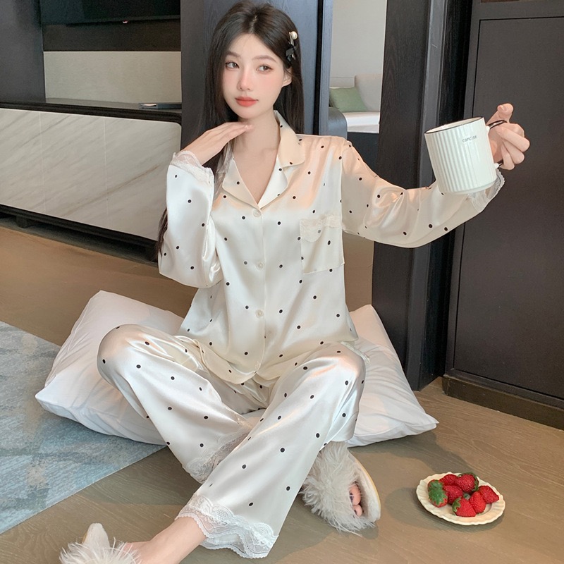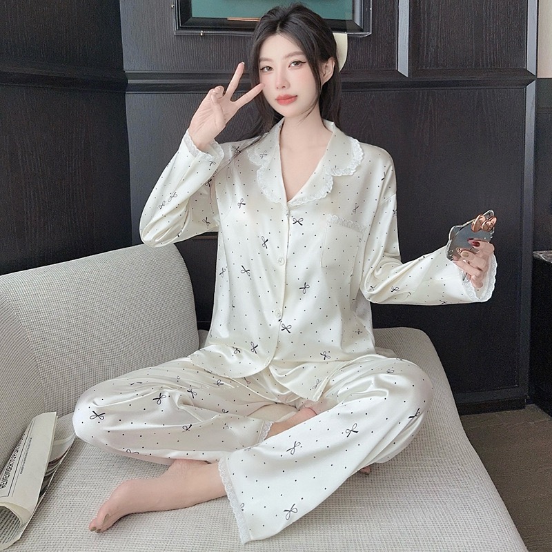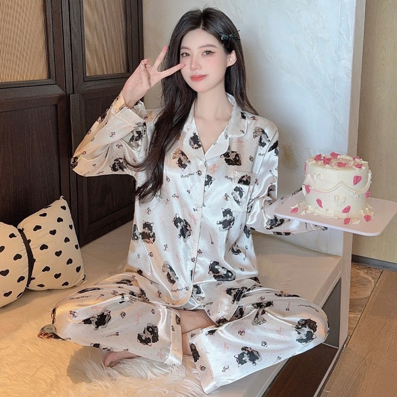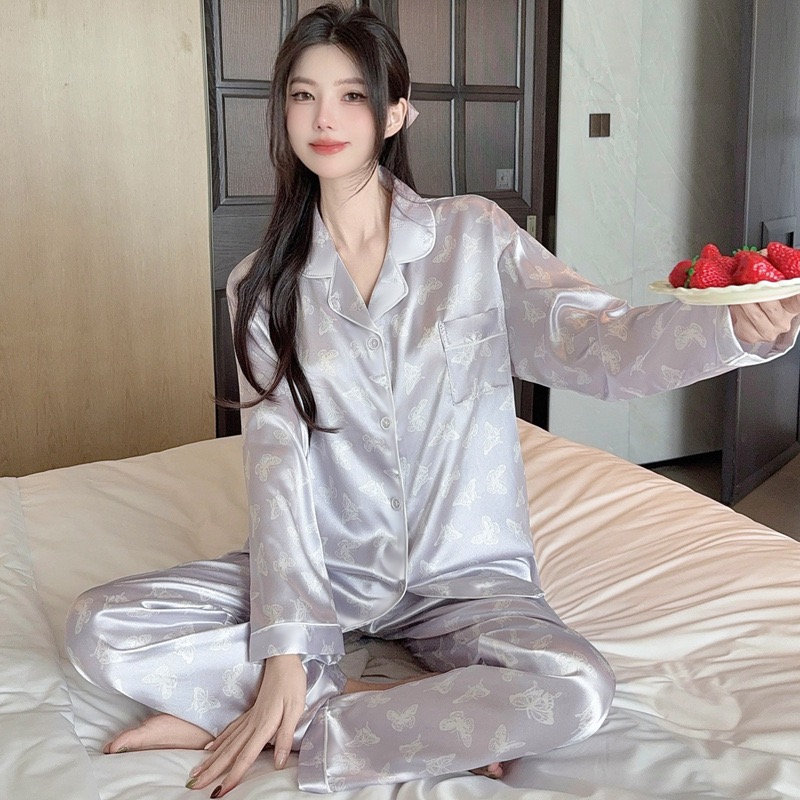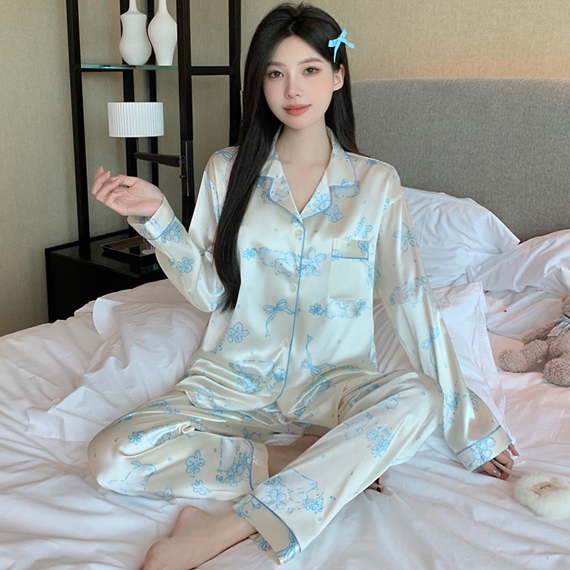 【GZ】无忧购26年春款轻奢荷叶边花卉长袖冰丝柔软家居服套装套GG2344#-1(截单后3-5天发货)