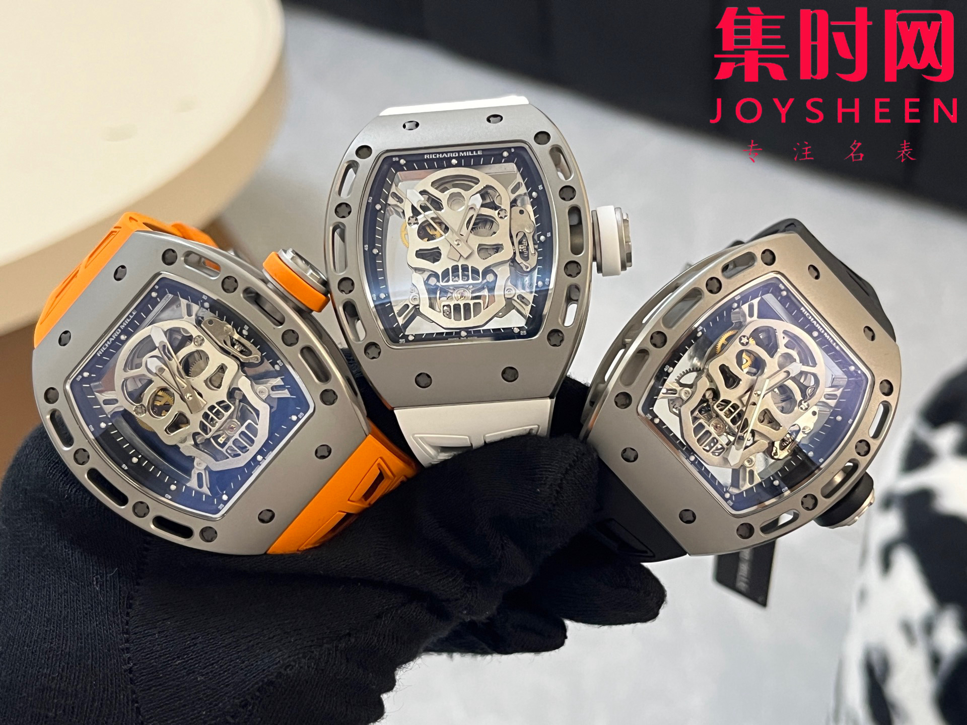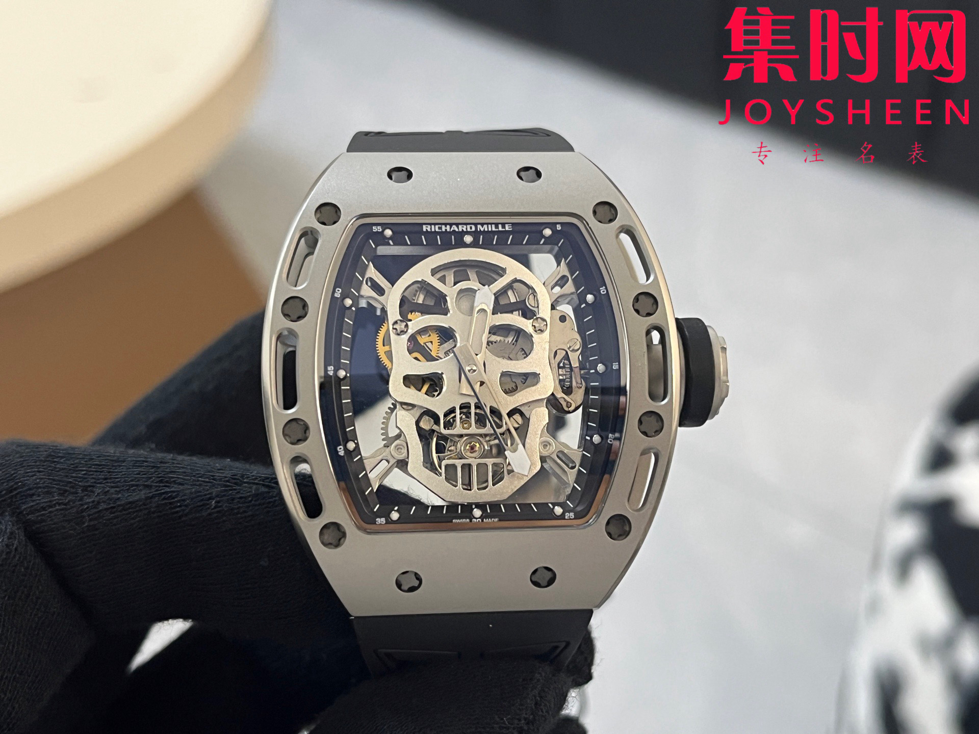 理查德米勒 RM052骷髅满天星 钻圈款 男士腕表 搭载定制一体手动上链机械机芯,鬼头经典传奇 镂空骷髅头腕表.骷髅头轮廓突出,造型霸气不羁,具有震撼人心的魅力。搭配艳耀色彩的橡轻便表带,更拉风,更前卫。腕间搭上鲜艳的表款,是不是很吸睛?表壳尺寸:43mmx50mm 真实展现!