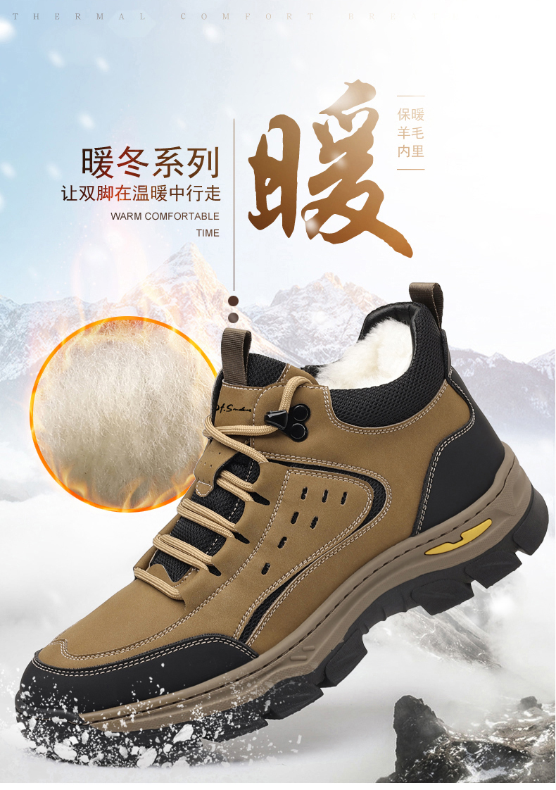 【羊毛内里】圣得西冬季加绒棉鞋中青年防滑耐磨登山鞋子2462964129
