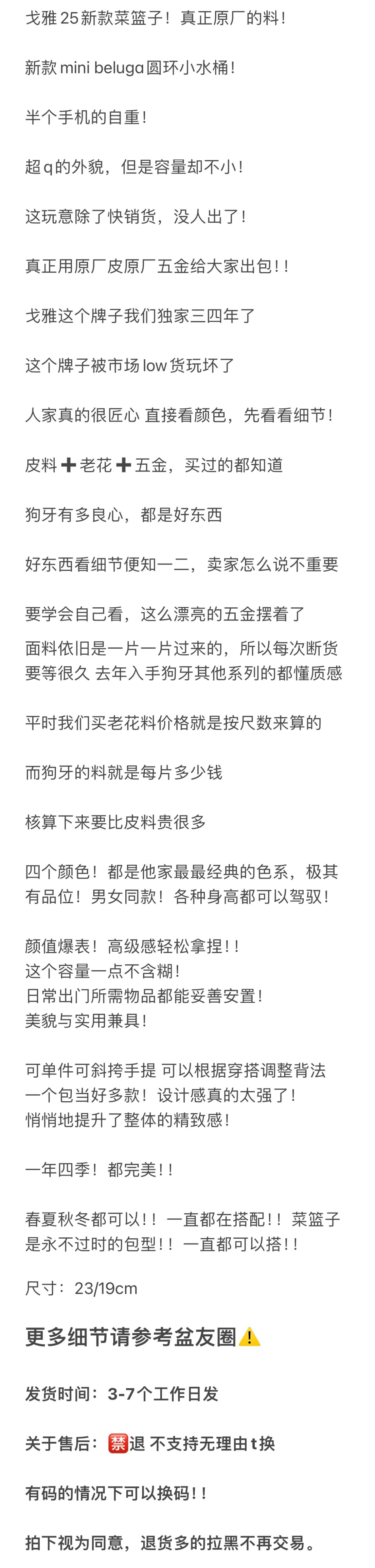 重磅渠道 25新款菜篮子 三色入 mini beluga圆环小水桶 一包多用 高级感轻松拿捏