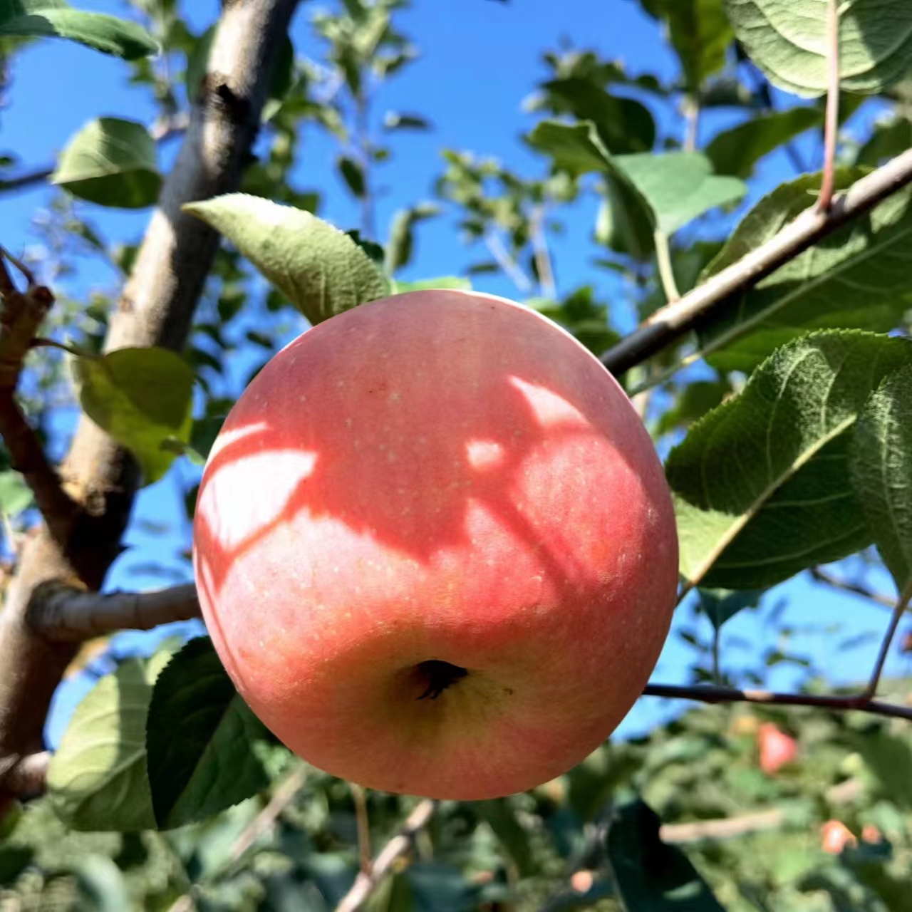 属于富士果系,是红富士苹果中的一个较优秀的品种。其果实个大,果实为近圆形,果面全红,色泽鲜艳喜庆,气味芳香;果肉呈黄白色,肉质细脆,汁多、味甜、含糖16%-18%,品质上等,风味独特