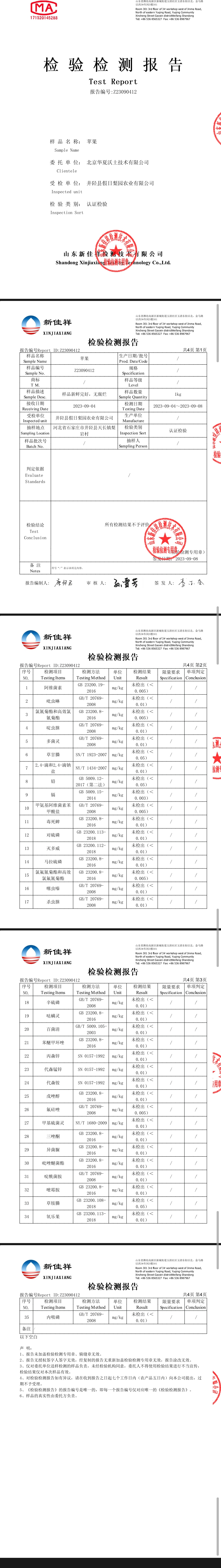 本批次的苹果通过了有机认证标准里的多项农残检测