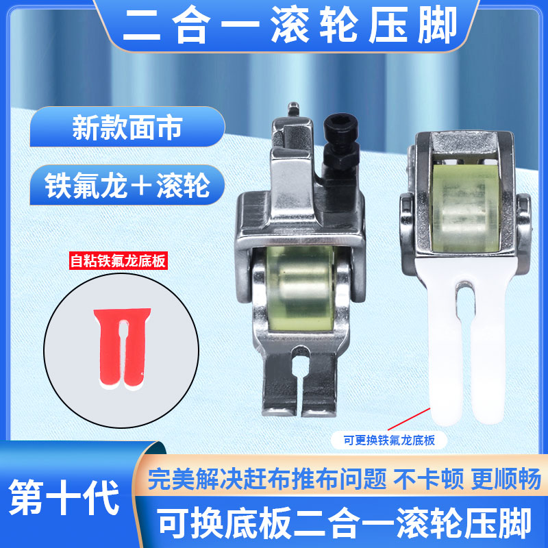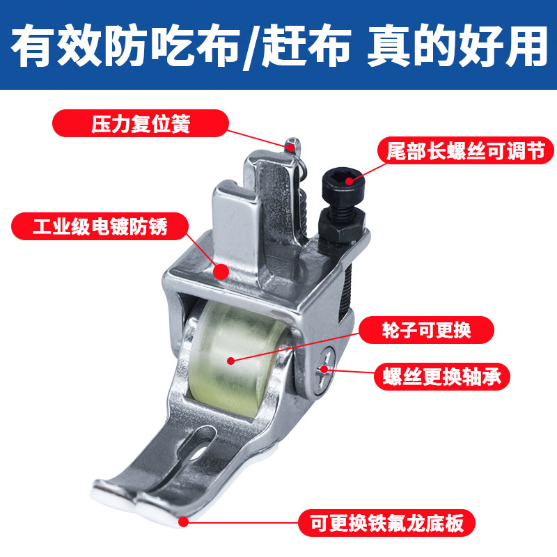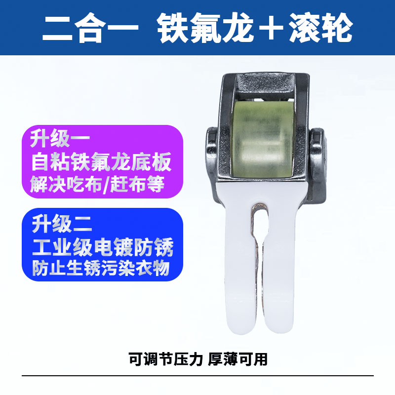 新款二合一铁氟龙滚轮压脚可调厚料皮革棉衣羽绒服窗帘绒布防吃布