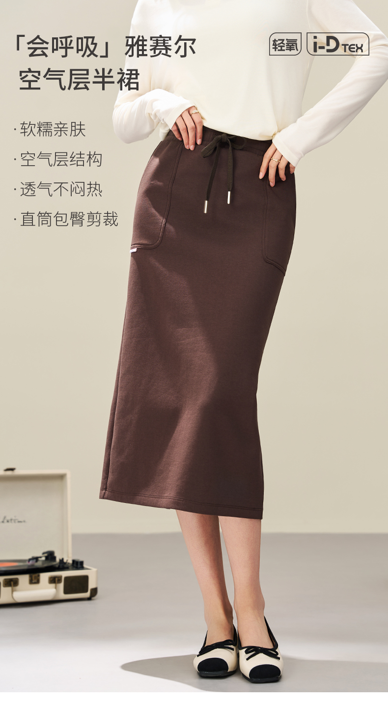 爱帝新品女士空气层包臀休闲半身长裙