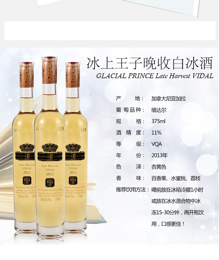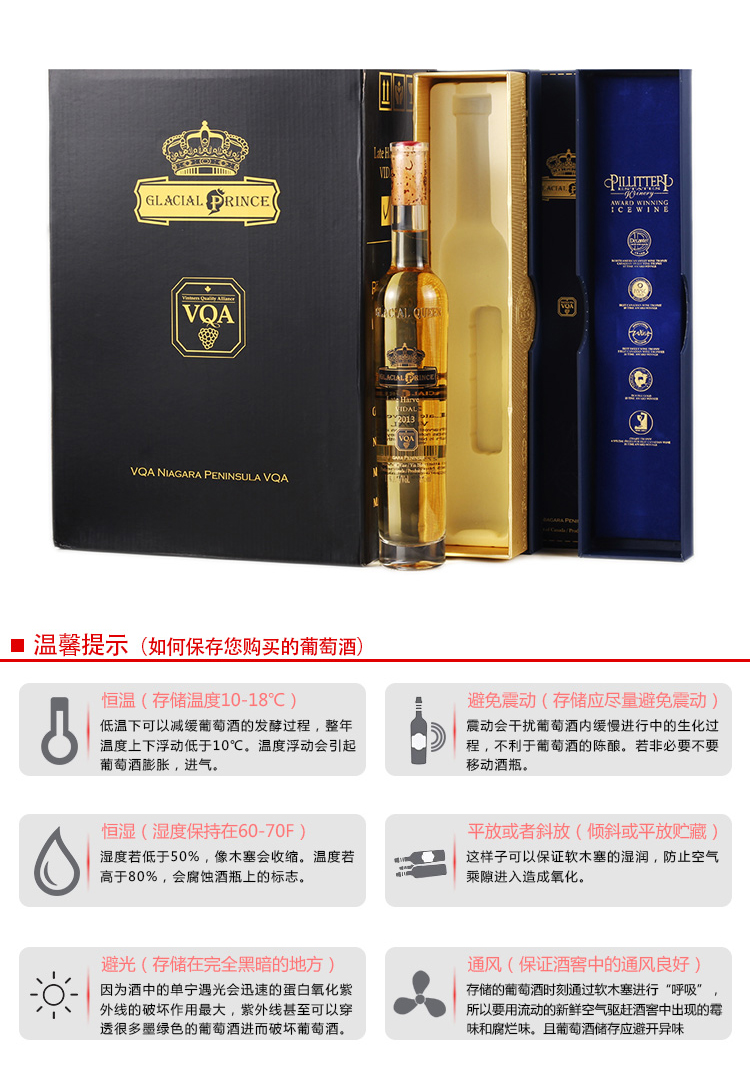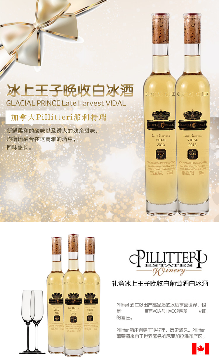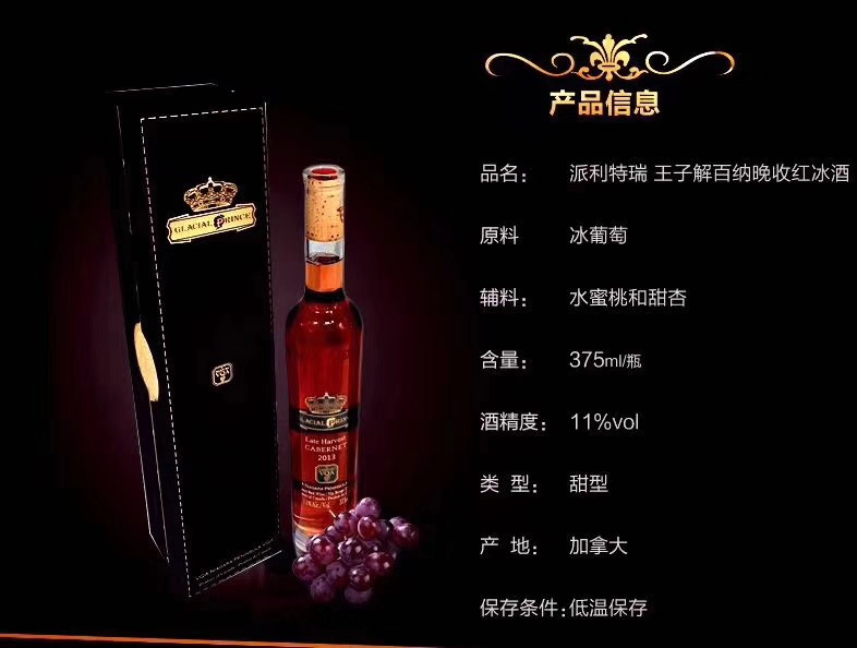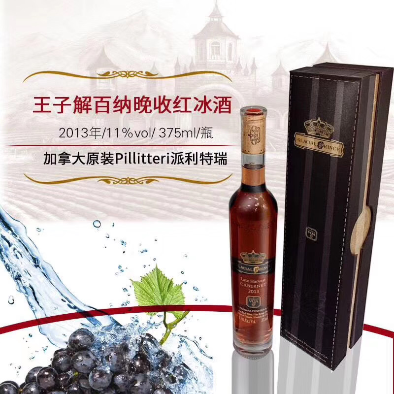 派利特瑞品牌 加拿大进口王子晚收冰酒 375mL(水晶瓶)送精美礼盒(跨境)