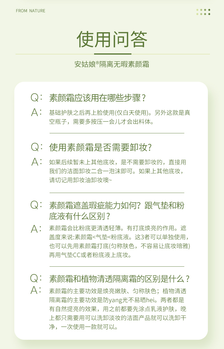 安姑娘隔离无瑕素颜霜 自然不假白 轻遮瑕 提亮肤色 素造素颜女神男神 0妆感 全国包邮 纯素美妆
