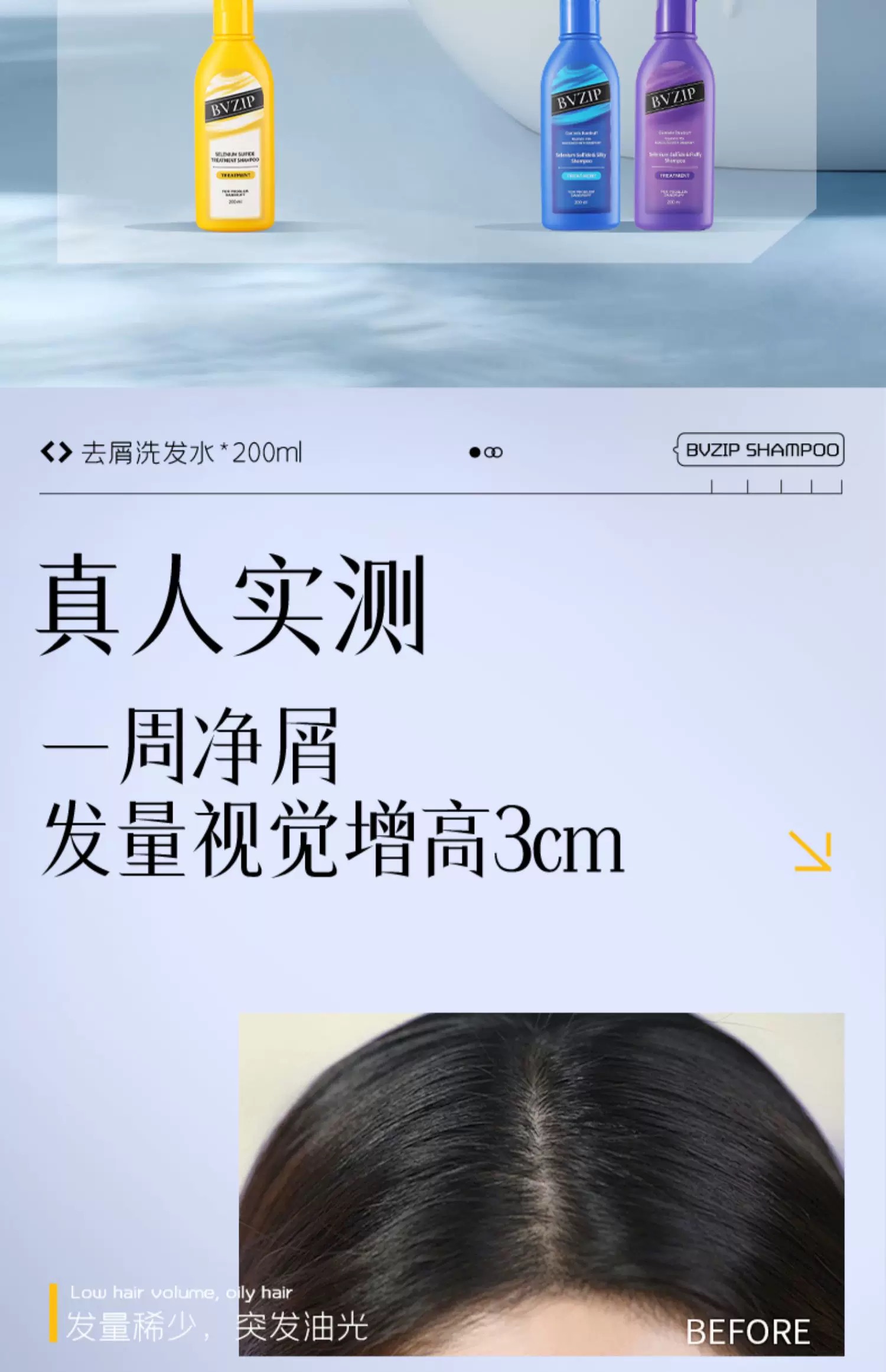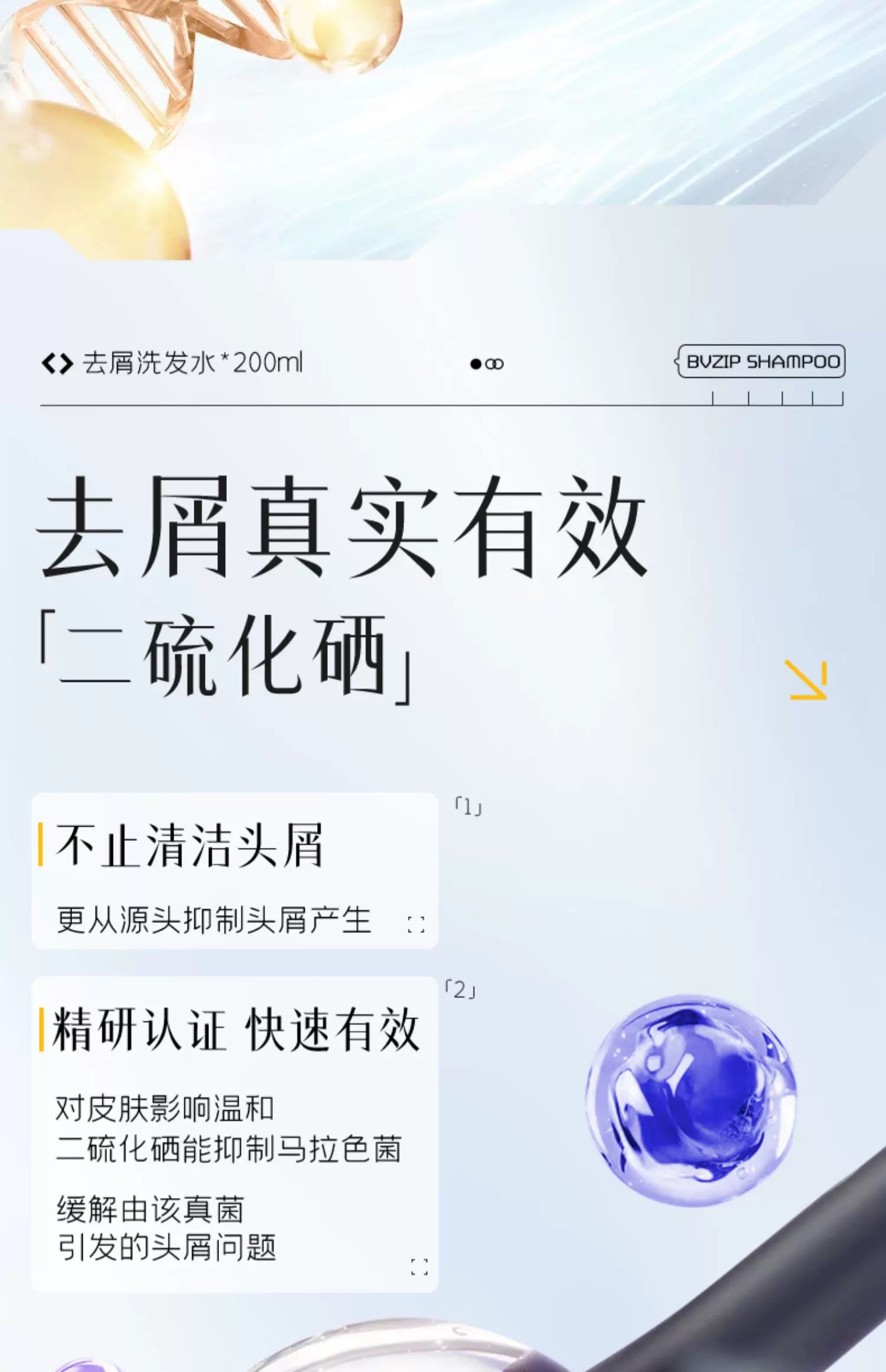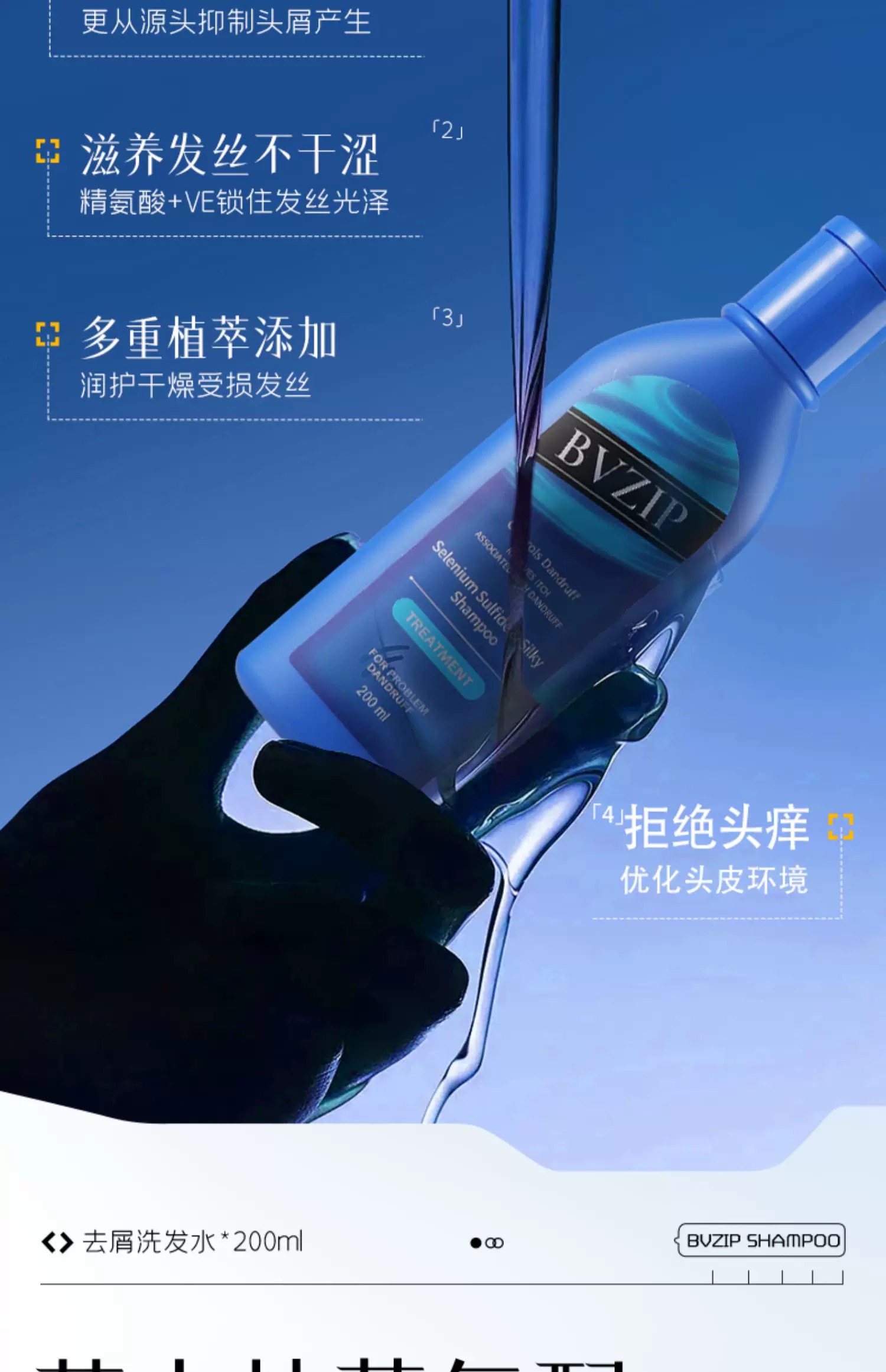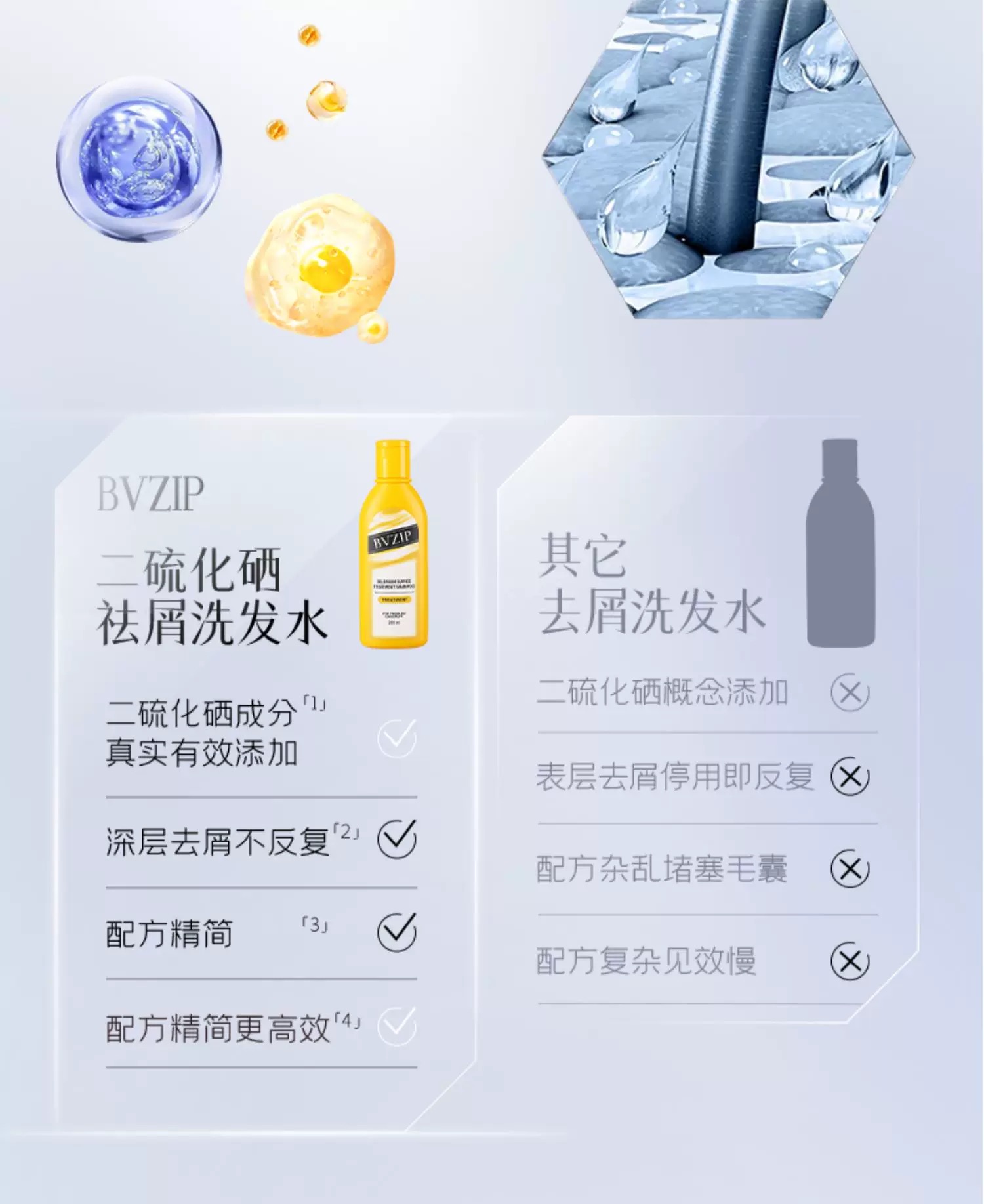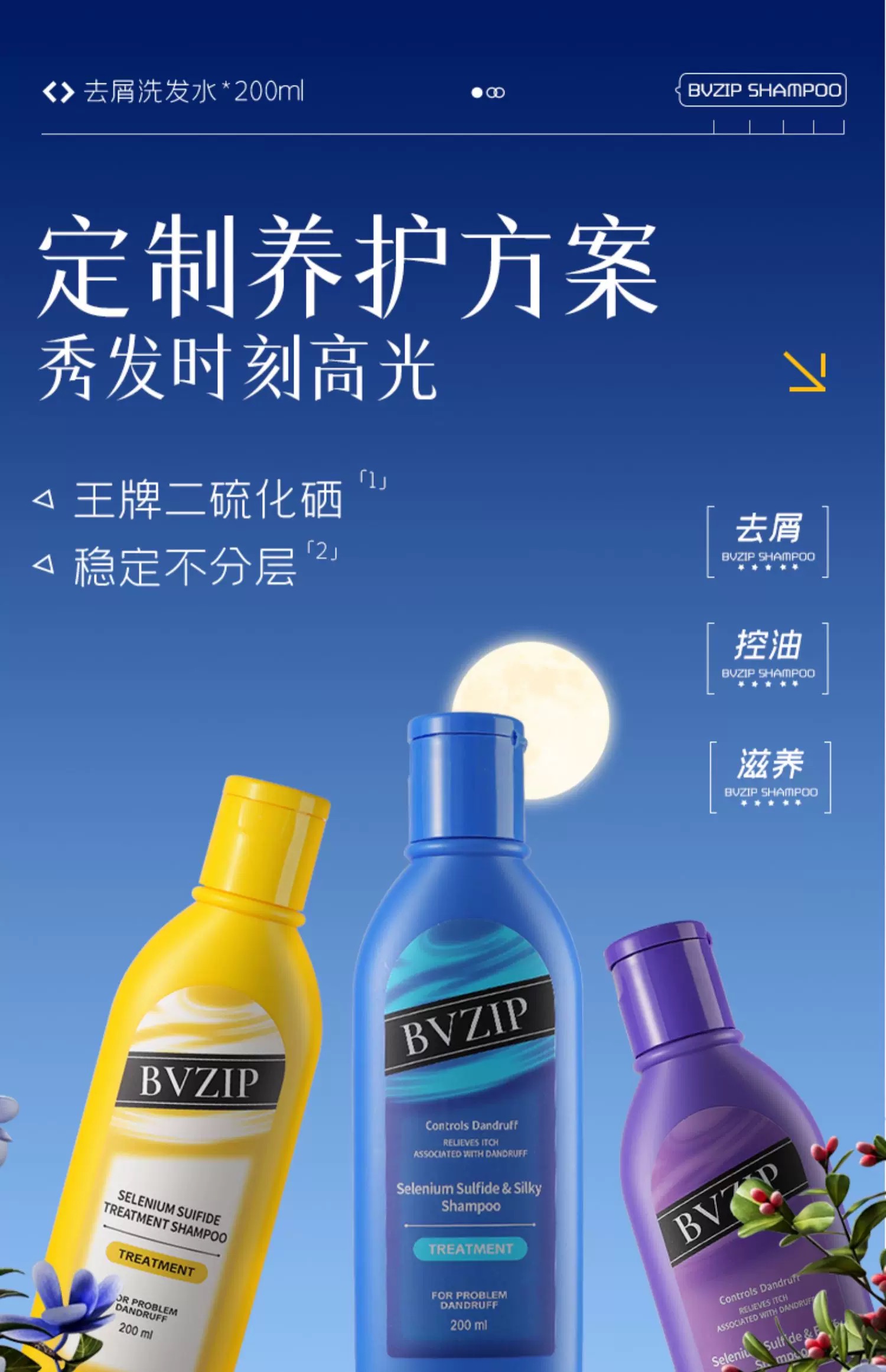 bvzip洗发水去屑止痒控油无硅油二硫化硒洗发露