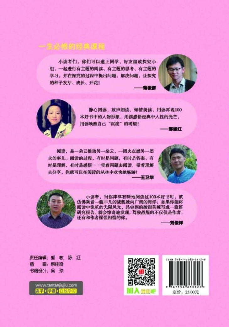 读经典的书是一件有趣的事。可无论读得多么有意思,甚至是酣畅淋漓,也还是需要在课堂上展示一下自己的读书成果一一那就请你们到www.tantanjiujiu.com的线上课堂来大显身手吧,看看自已是否已经是个“小学霸”了。如果线上课堂你们还只是“通关”或“高手”,那么“线上老师”会给你们提供学习的路径、方法、视频微课,帮助