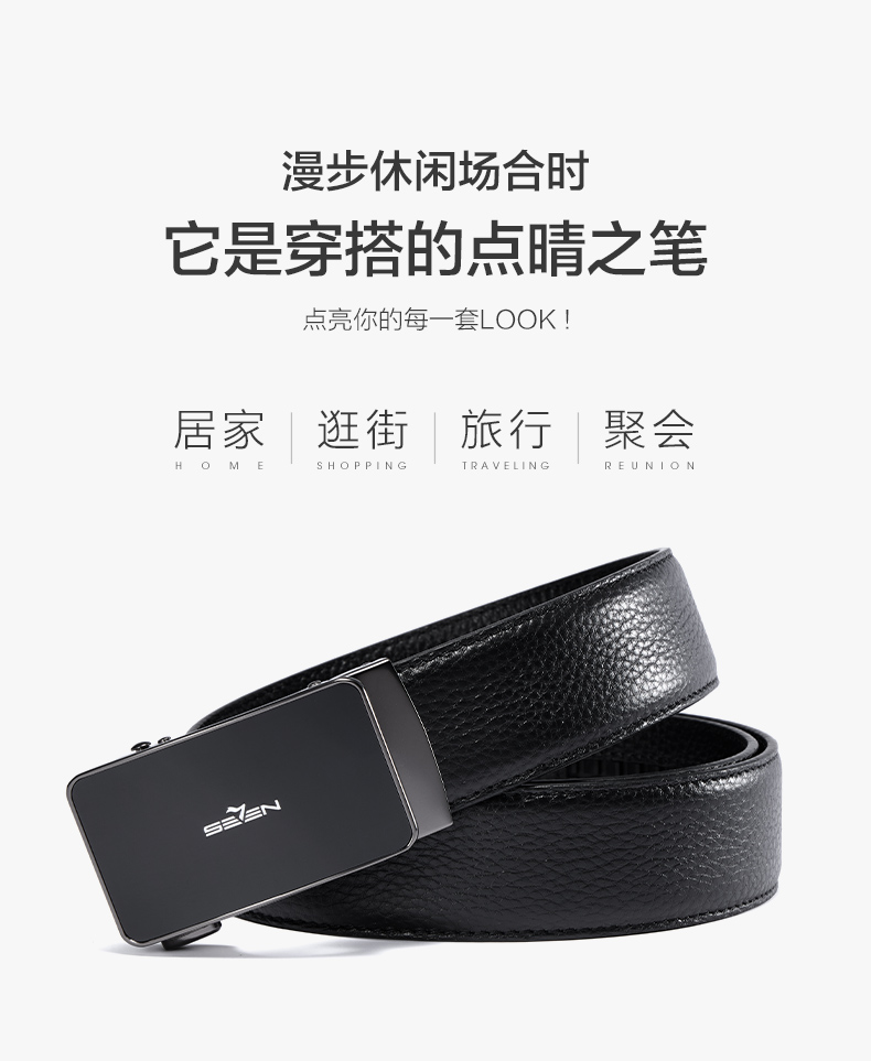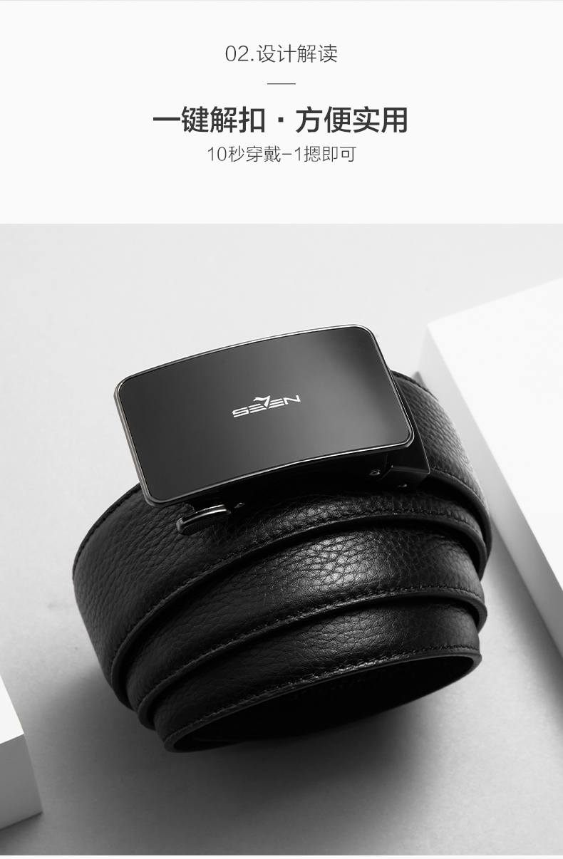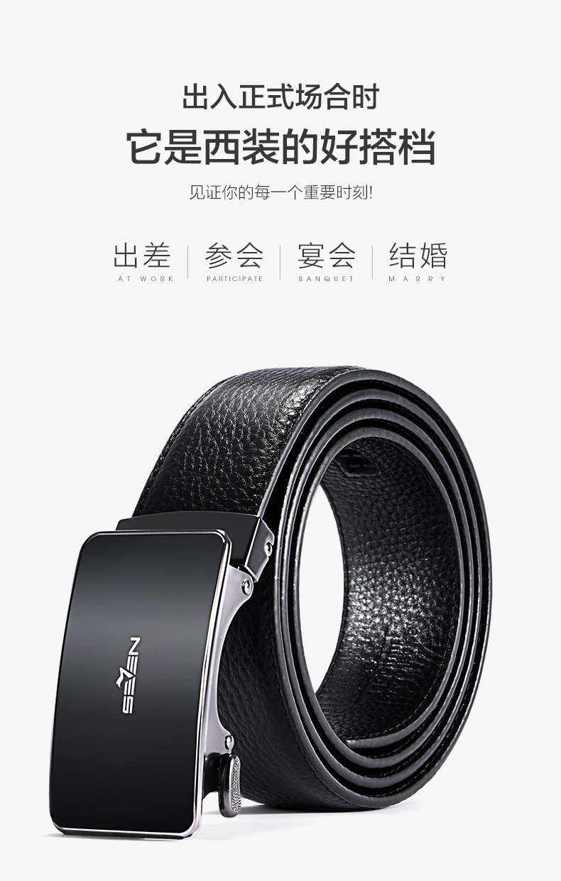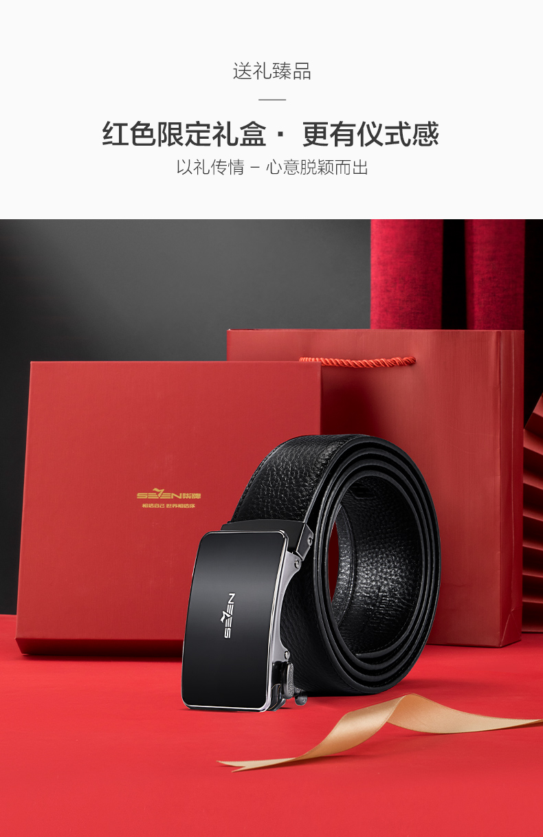 【婚礼季】柒牌男装配饰自动扣腰带2025秋季新款商务经典休闲真皮皮带礼盒装127P70160
