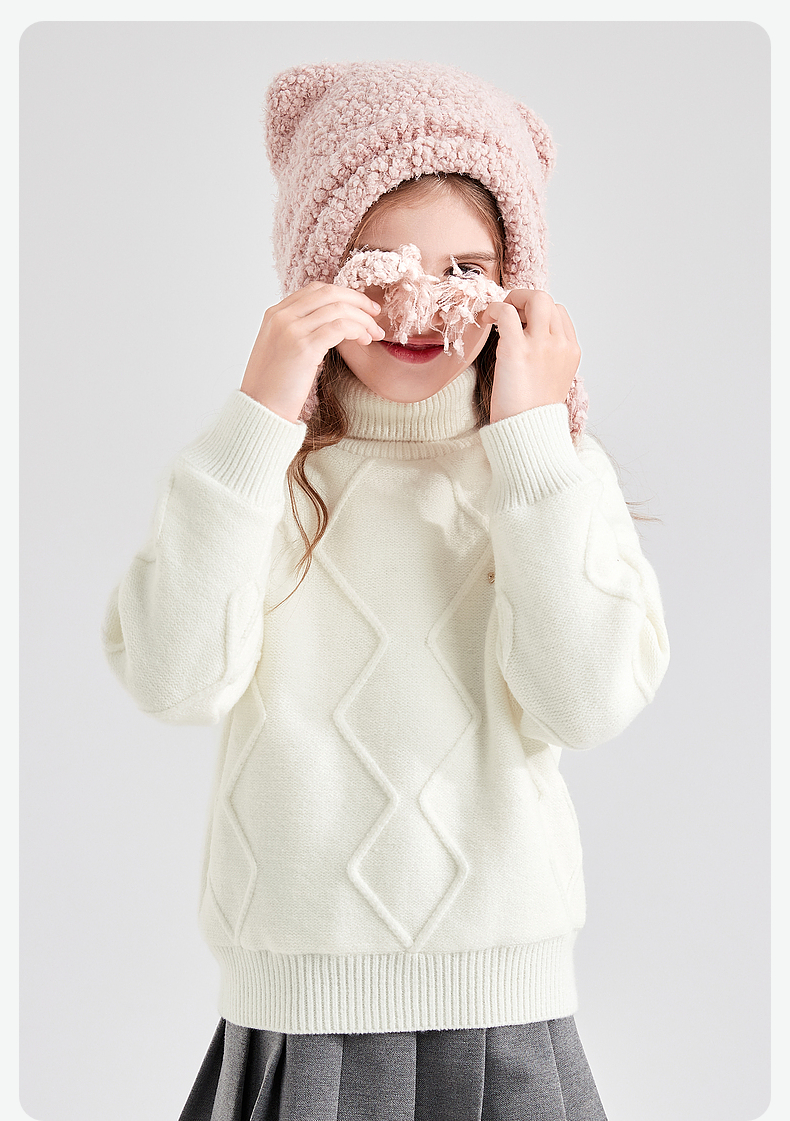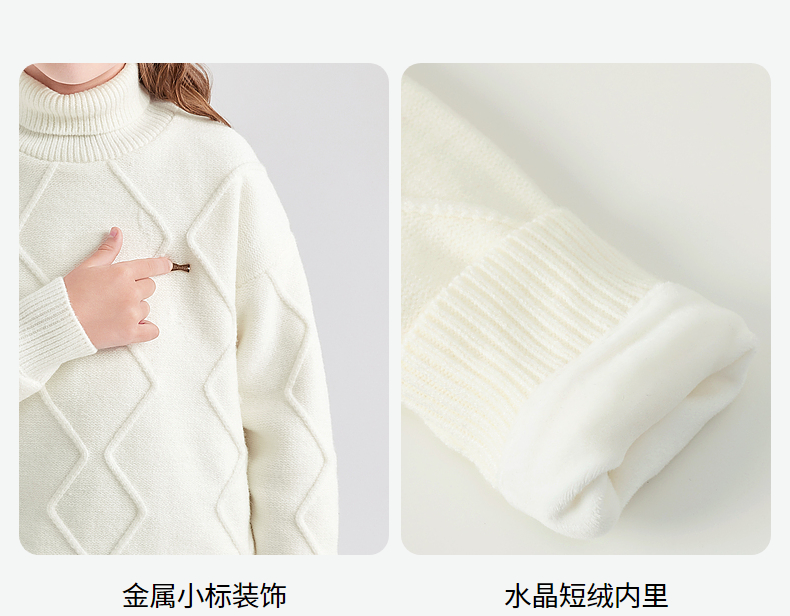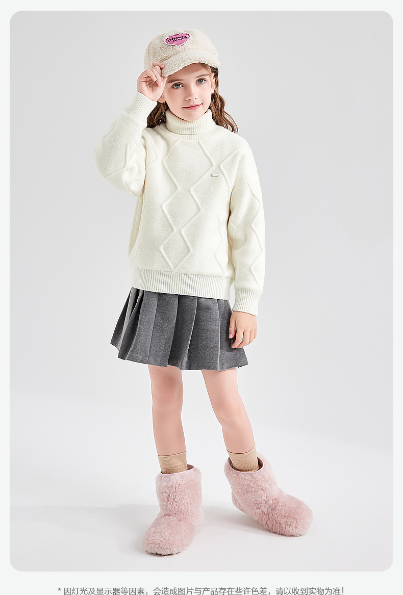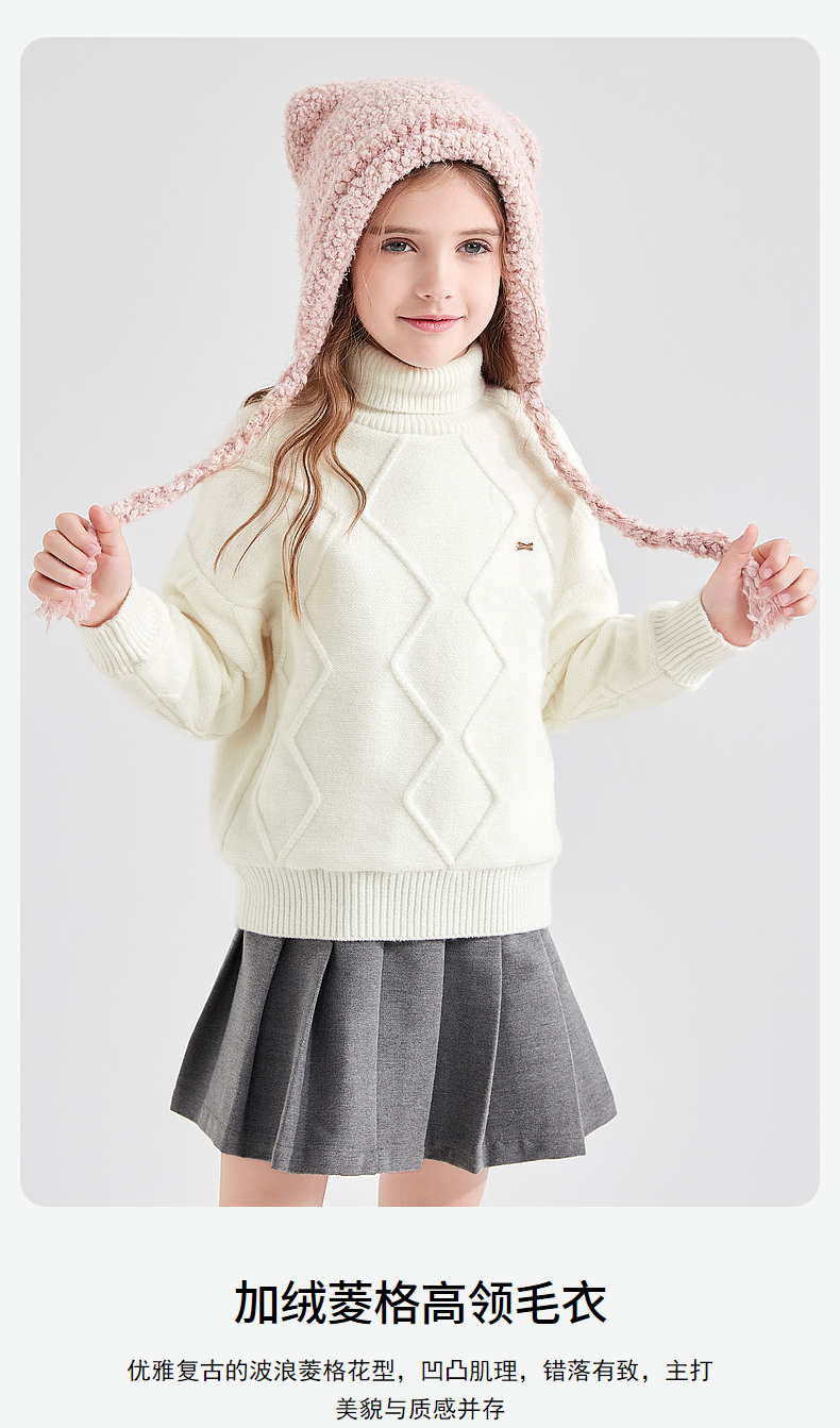 笛莎Deesha 童装女童针织衫2023冬新款加绒高领甜美花朵毛衣