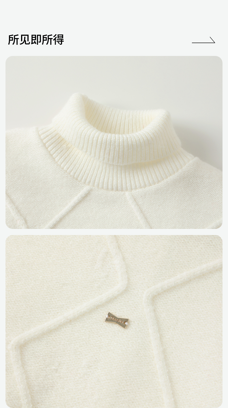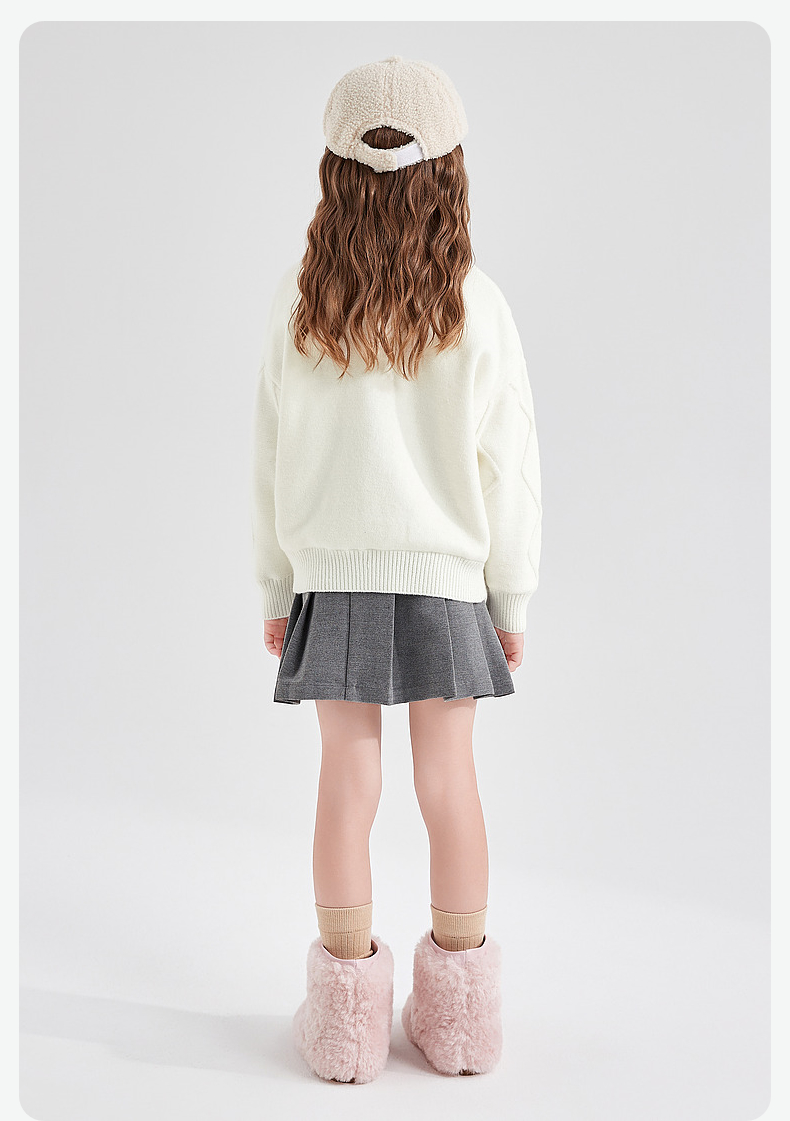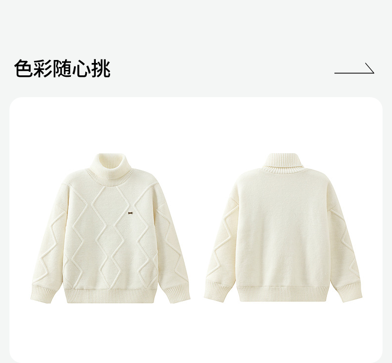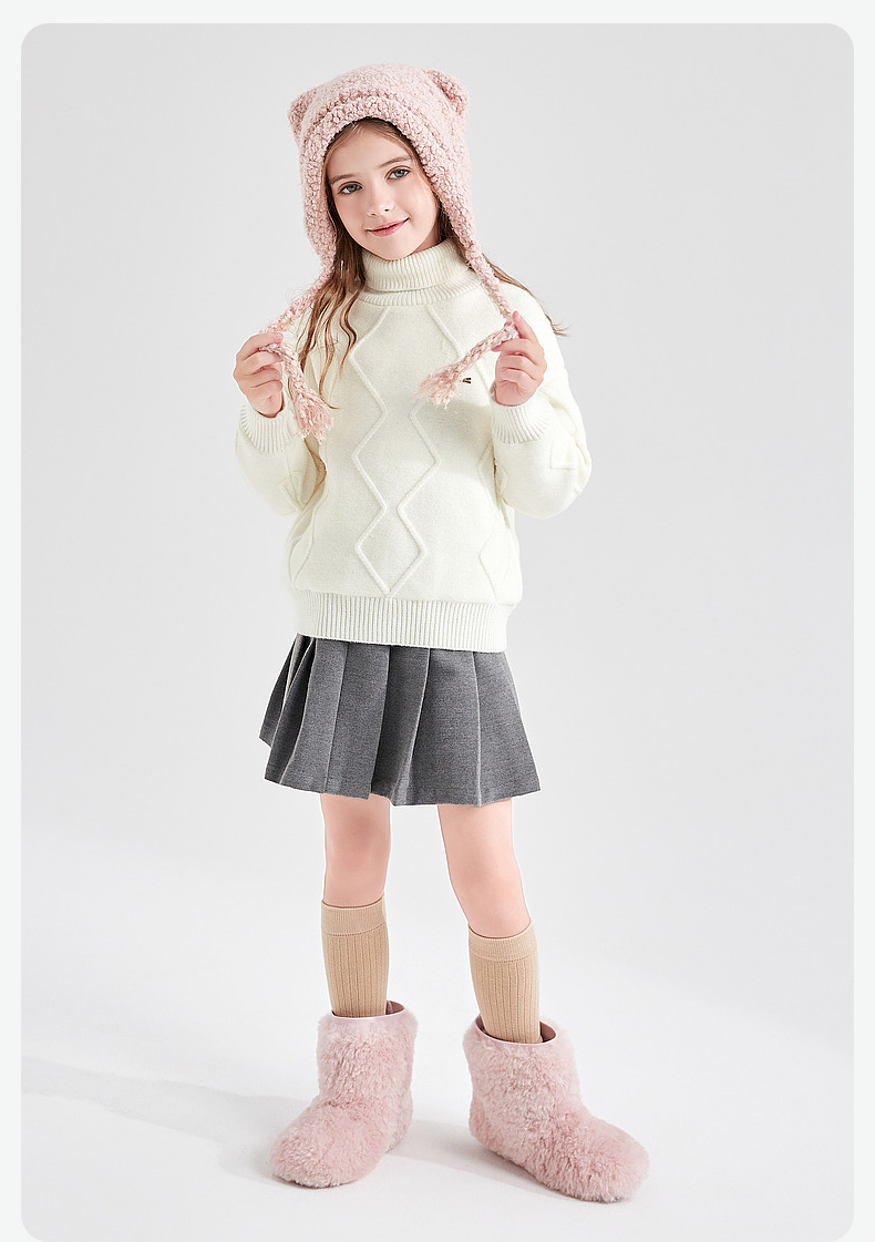 笛莎Deesha 童装女童针织衫2023冬新款加绒高领甜美花朵毛衣