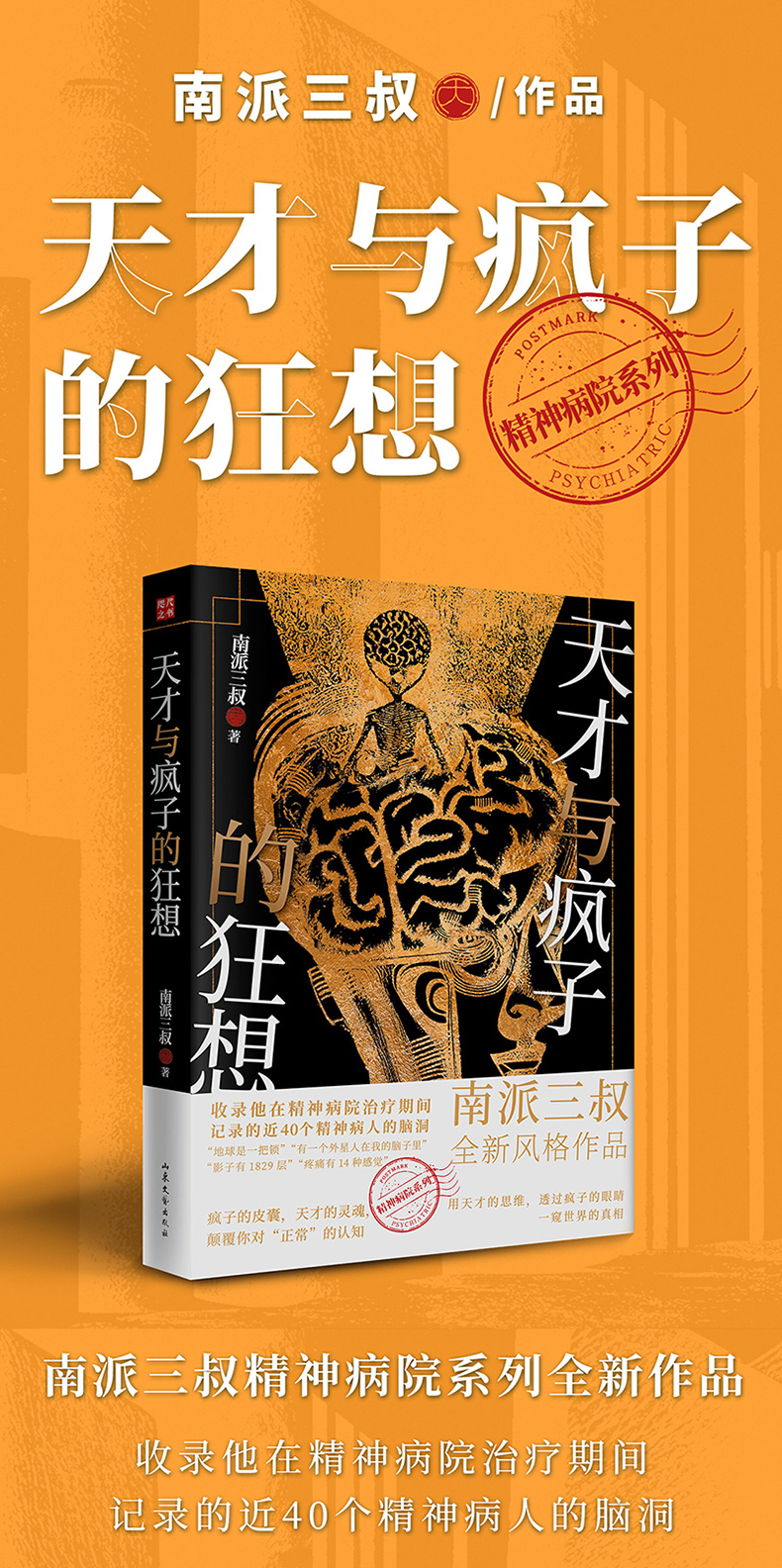 "南派三叔“精神病院系列”全新风格作品。 “地球是一把锁”“人体是黑盒子”“有一个外星人在我的脑子里”“影子有1829层”“疼痛有14种感觉”,天马行空、奇思异想,从量子物理到生命存在,用天才的思维,透过疯子的眼睛,一窥世界的真相。 全新绘制精美主题插图,与故事情节相得益彰,增加沉浸式阅读体验感。 随书附赠《非正常笔记》。笔记搭配插图和金句,方便随身携带,随时记录脑洞,进行灵感碰撞、涂画设计。 写作这本书其实是一个意外。我脑子里有大量的信息,如果不定时清理,整个人就会进入一种焦虑状态,所以我需要通过写作来清空大脑。我的脑中积攒了太多的记忆和太多的联想,但我一直不知道用哪种方式写作,才能够优选效率地完成清理。后来我找到了,就是写这种类型的文字。 我有很多的精神病友,他们的故事离奇,但大多不能写,这本书也是为了纪念他们给我提供的各种八卦和脑洞。 ——南派三叔"