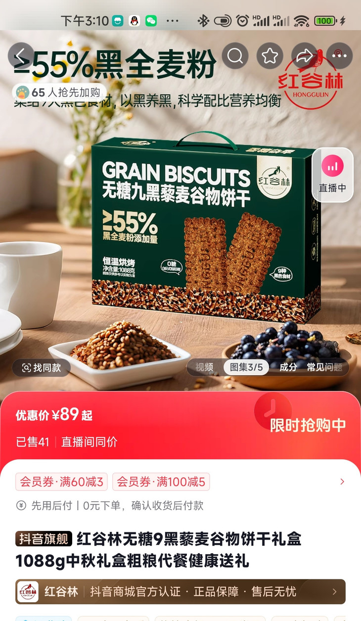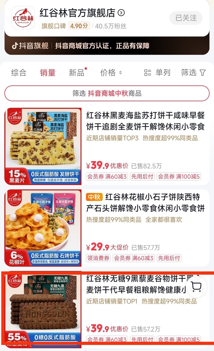 专业机构认证,更可信!!更放心!!父母吃着也就更健康了!! 爸妈能这么喜欢,说到底还说因为品牌够靠谱~~ 红谷林家不仅仅销售好,单品在某音上有57.2W的销量,多次登上某音无糖食品TOP1!!!