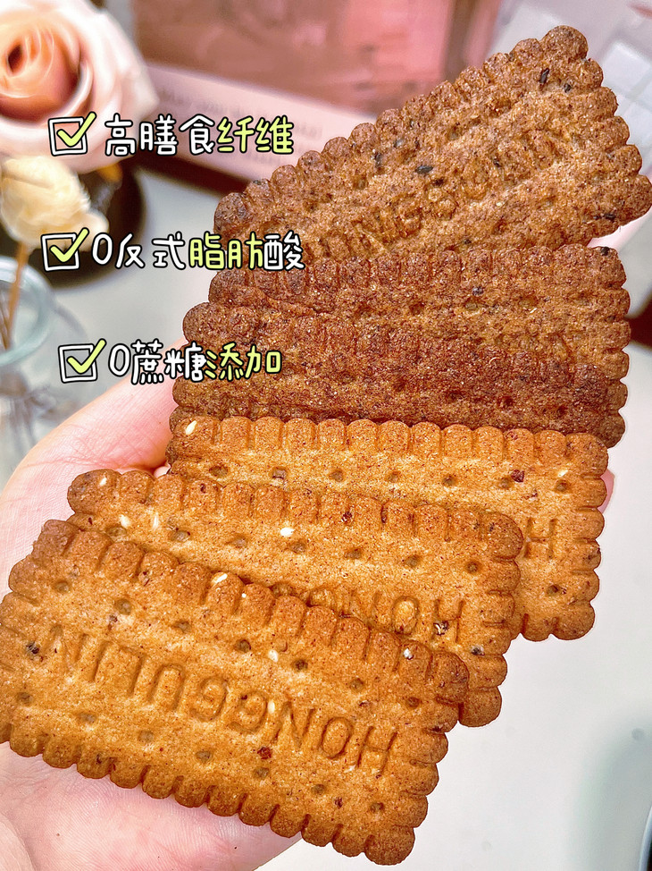 可以嚼到谷物的颗粒感!相对比其他的饼干更加的酥脆!又酥又脆,属于是越吃越上头! 无糖配方,低热量,低温烘焙不上火! 0添加!而且也没有添加剂!没有防腐剂,香精,色素等乱七八糟的东西! 真的是全家人的需求都照顾到了 管理身材人士、控糖人群、孕妇🤰小孩都能吃 全家人都放放心心的吃~👅味蕾的独特享受~