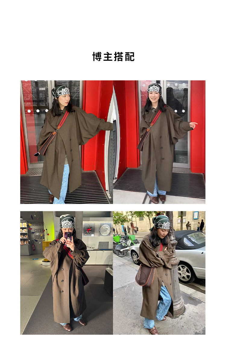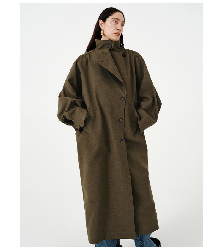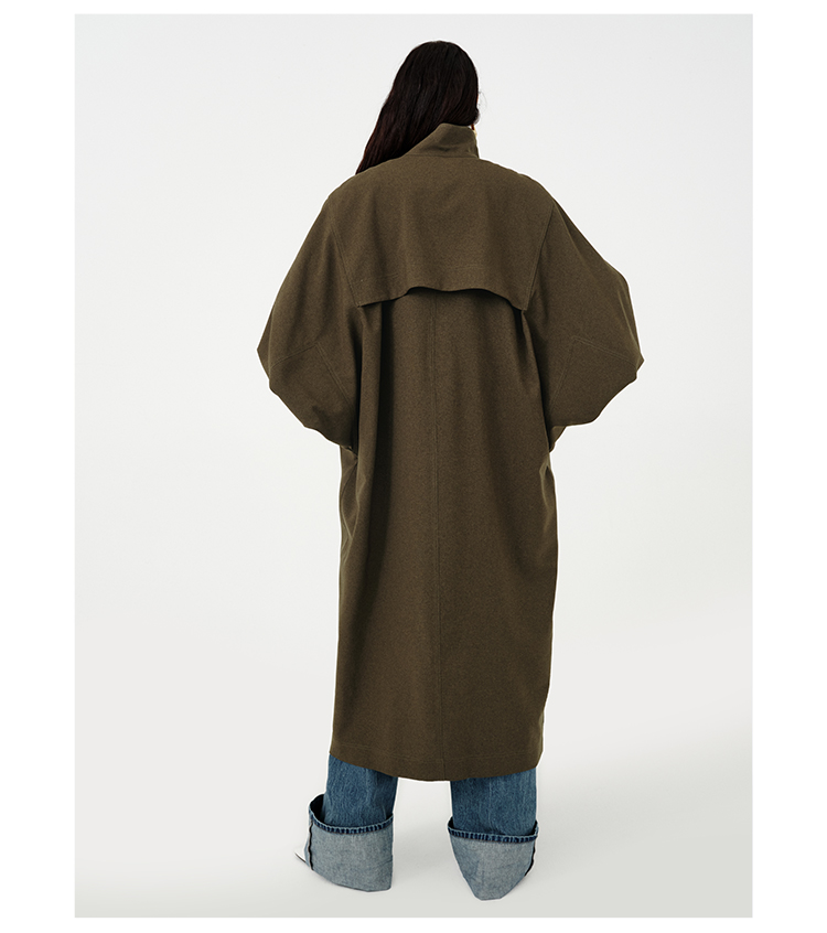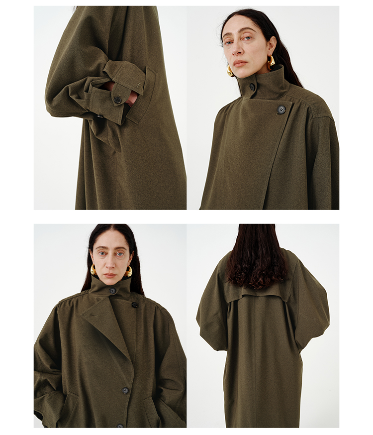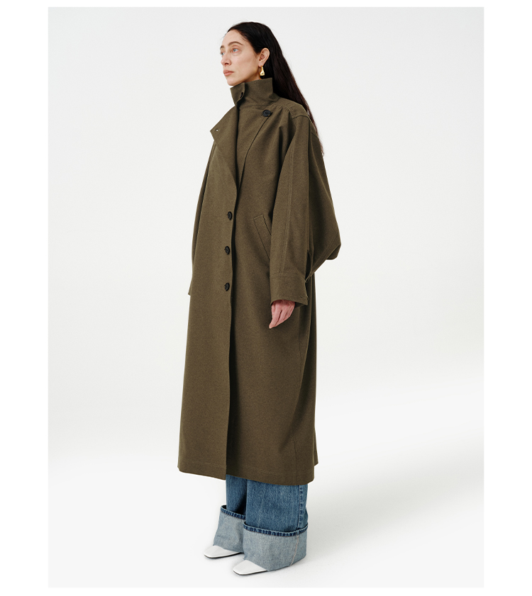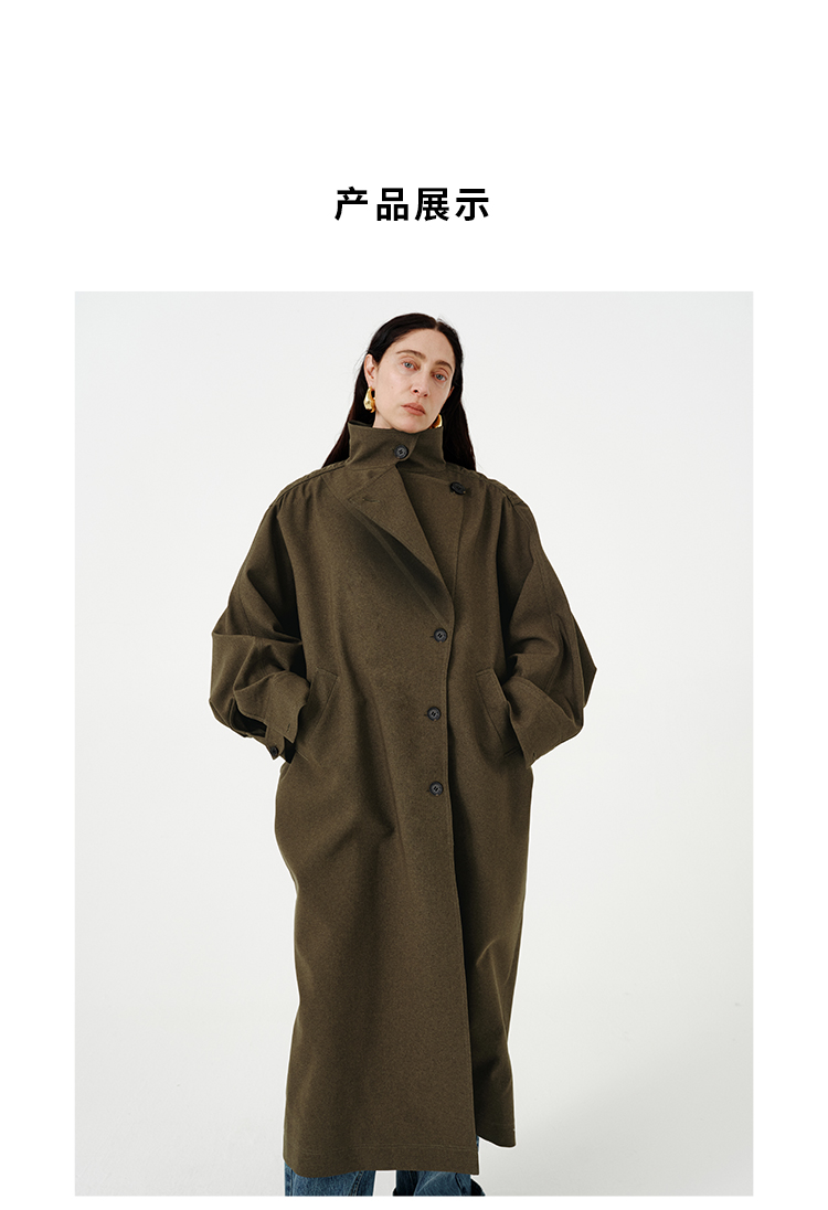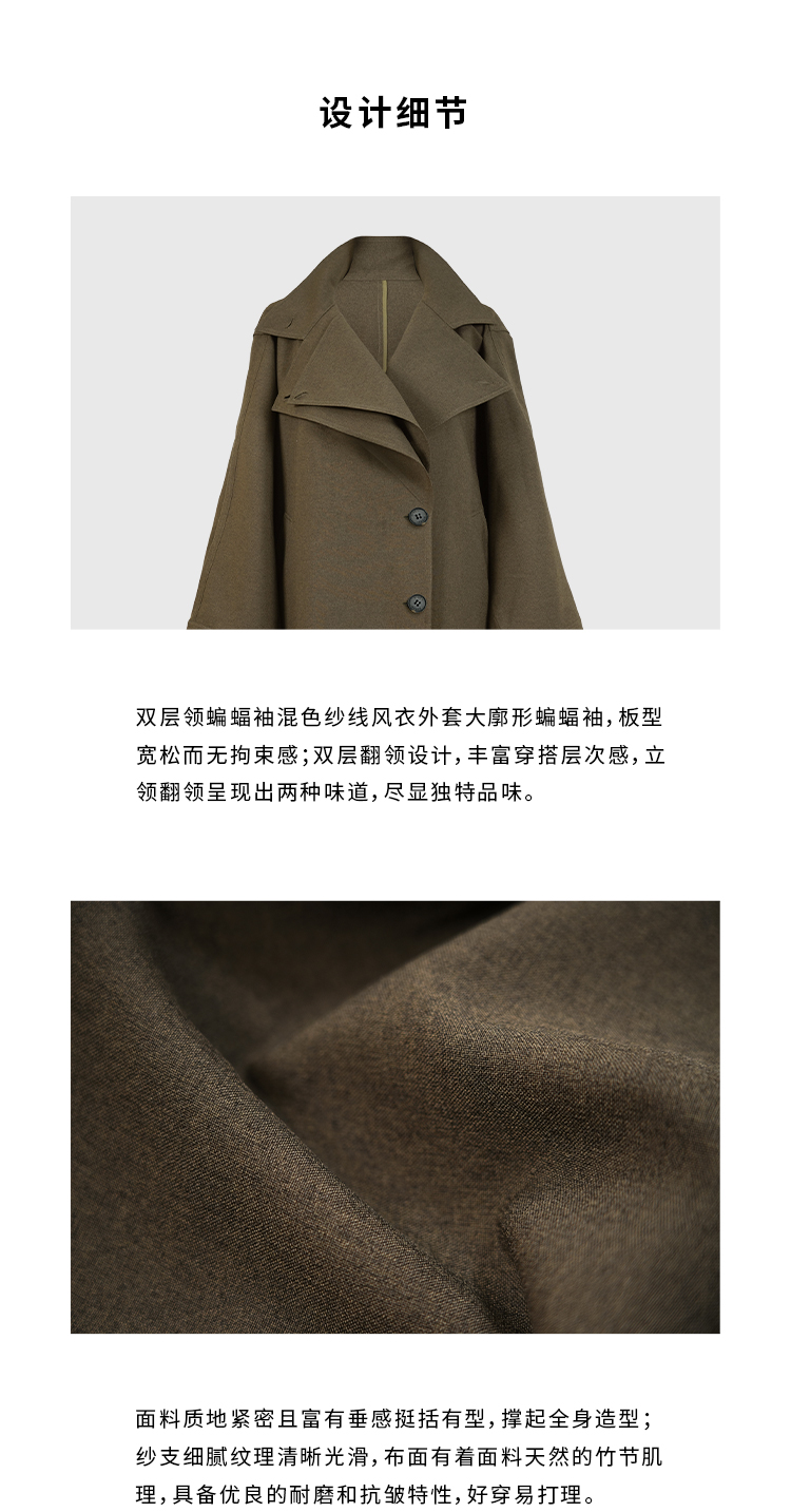 HIDEMI 日本进口阳离子纱线斗篷蝙蝠袖双层不对称领宽松长款风衣