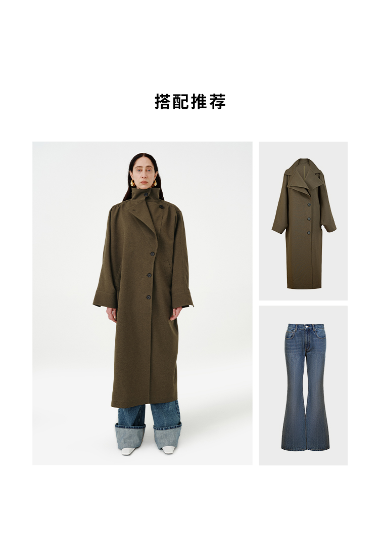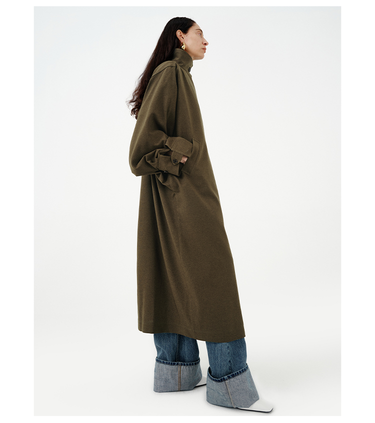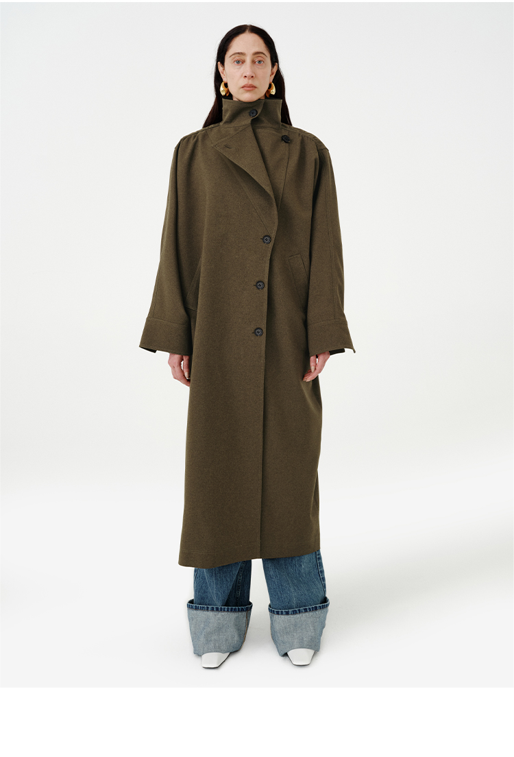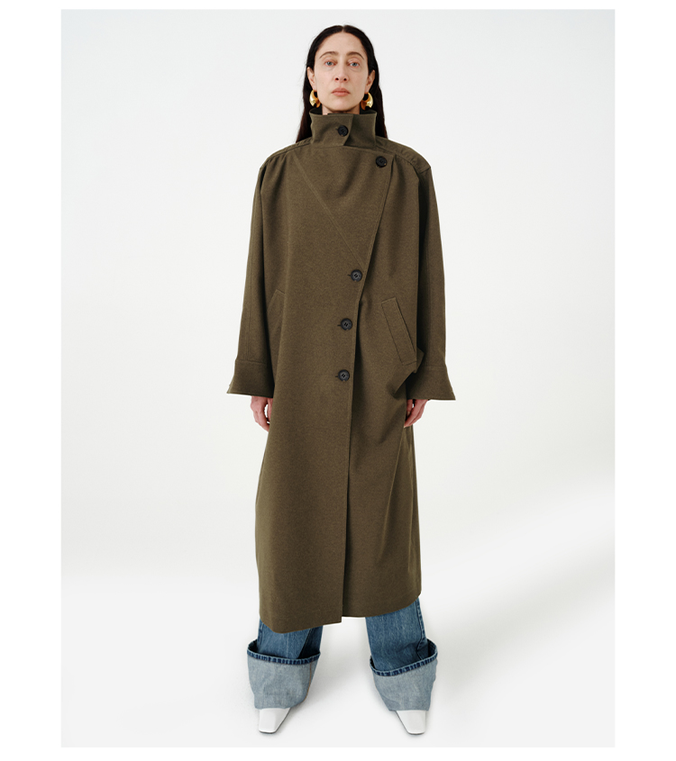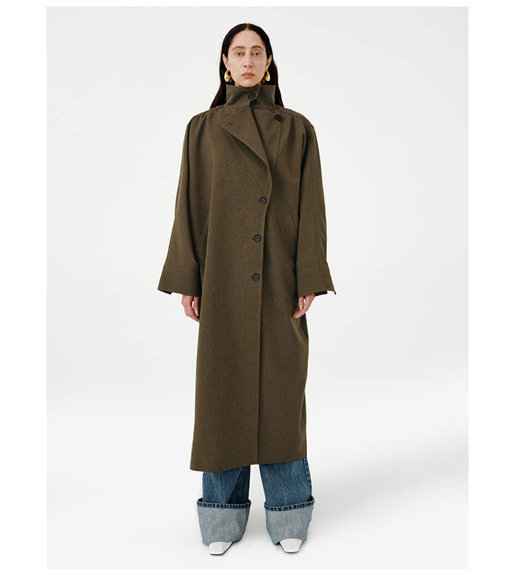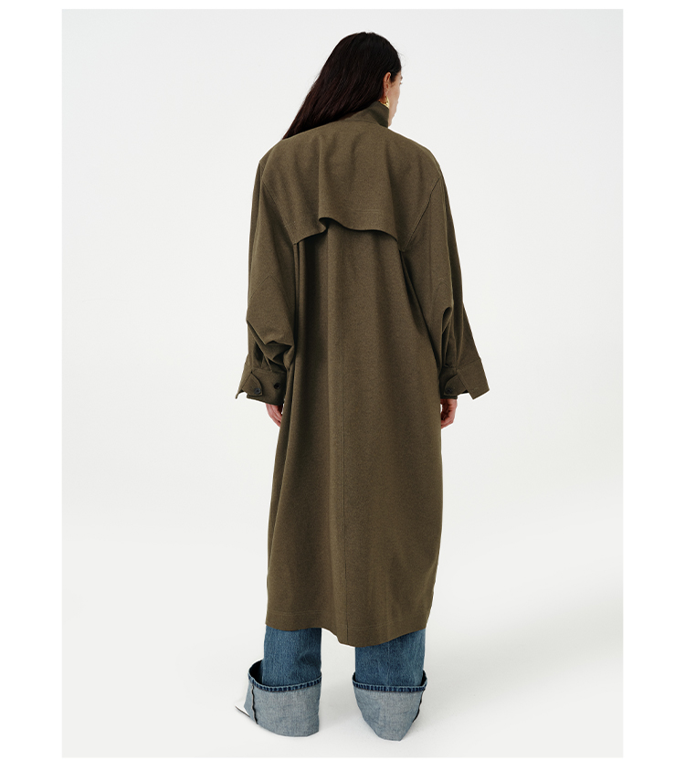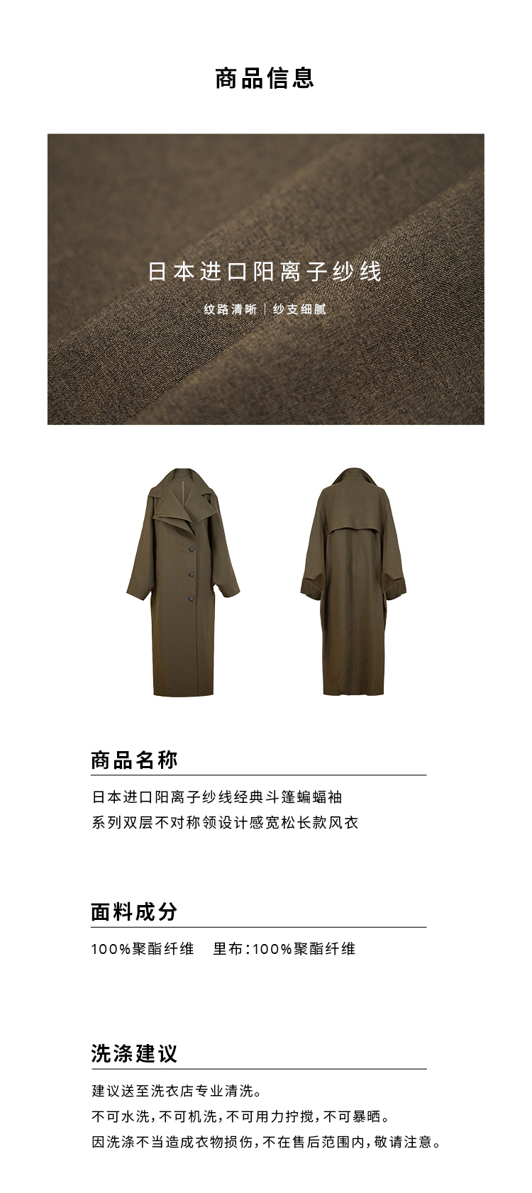 HIDEMI 日本进口阳离子纱线斗篷蝙蝠袖双层不对称领宽松长款风衣
