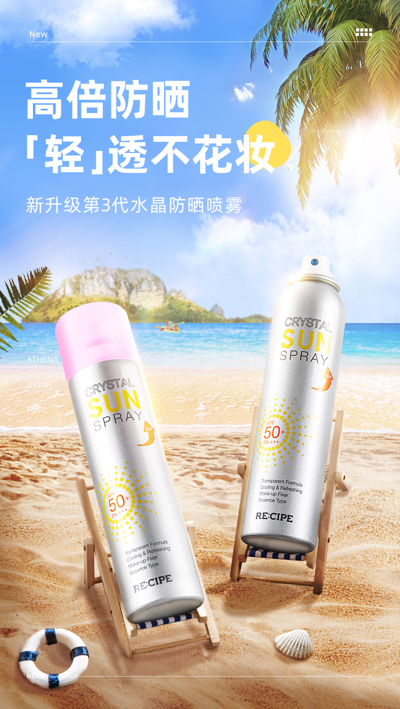 韩国RE:CIPE玥之秘水晶防晒喷雾180ml/瓶 2支装
