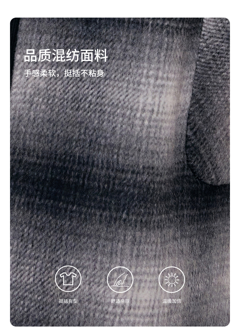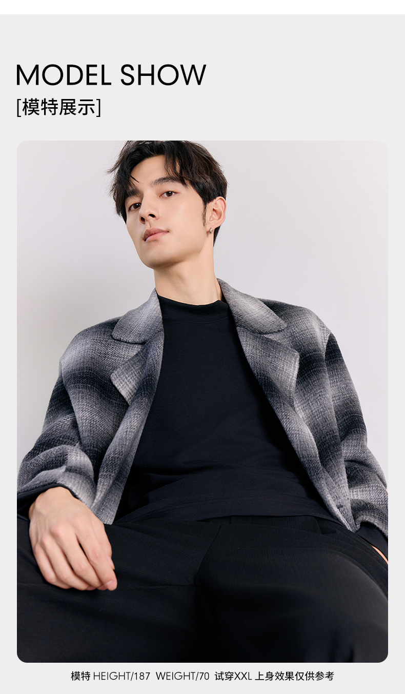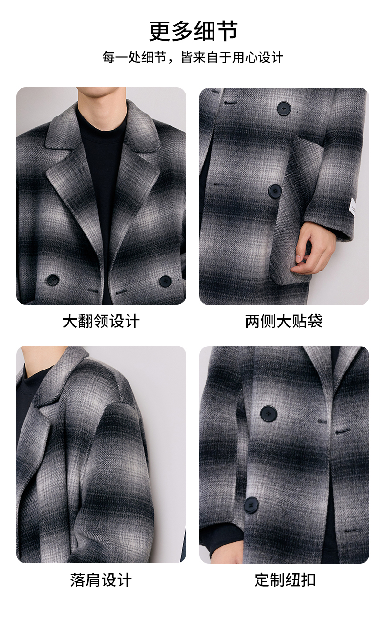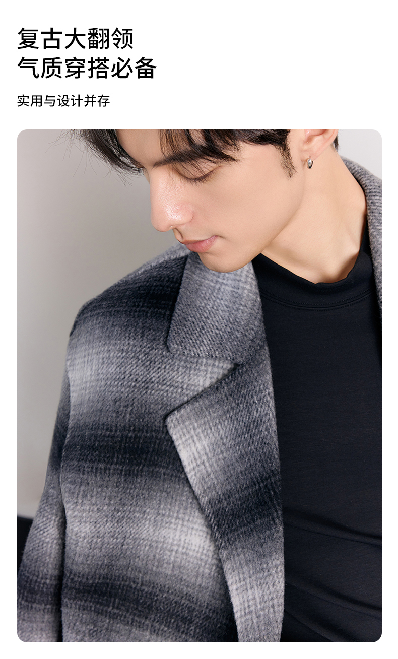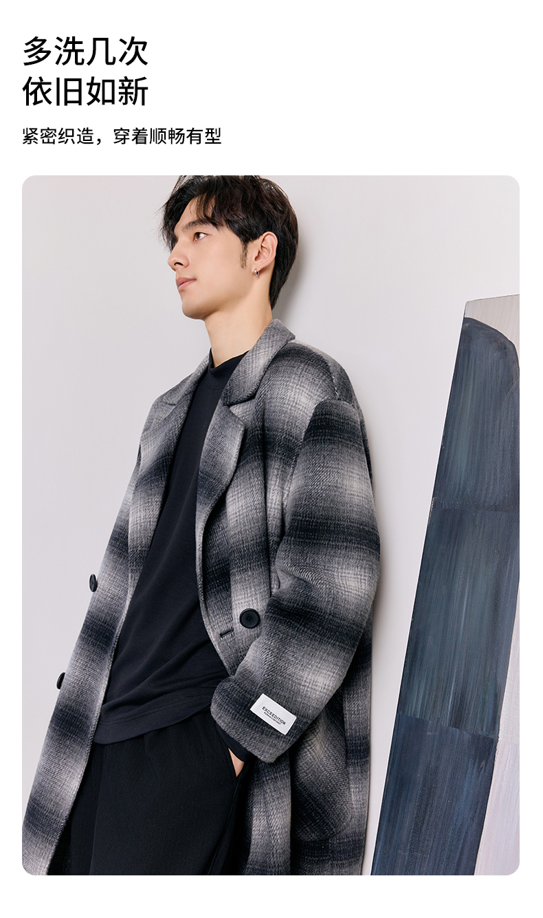贝纳川冬季长款黑白格子羊毛大衣ECT328003