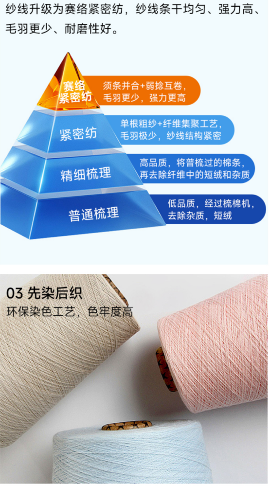 ⭕️100%棉双层纱,棉纱的金字塔顶尖工艺 新疆长绒棉+精梳赛络紧密纺+多次高温水洗 已经是「棉」市场最高等级,无法再升级