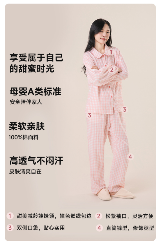 ✅面料单耗增加约20% 才能做到舒适不紧绷的陪伴 宽松的胸袖腿,高拉伸的腰围 给身体足够的空间,怎么动都舒展 伸懒腰,翻滚都无压力 安然入梦,睡个软软的懒觉