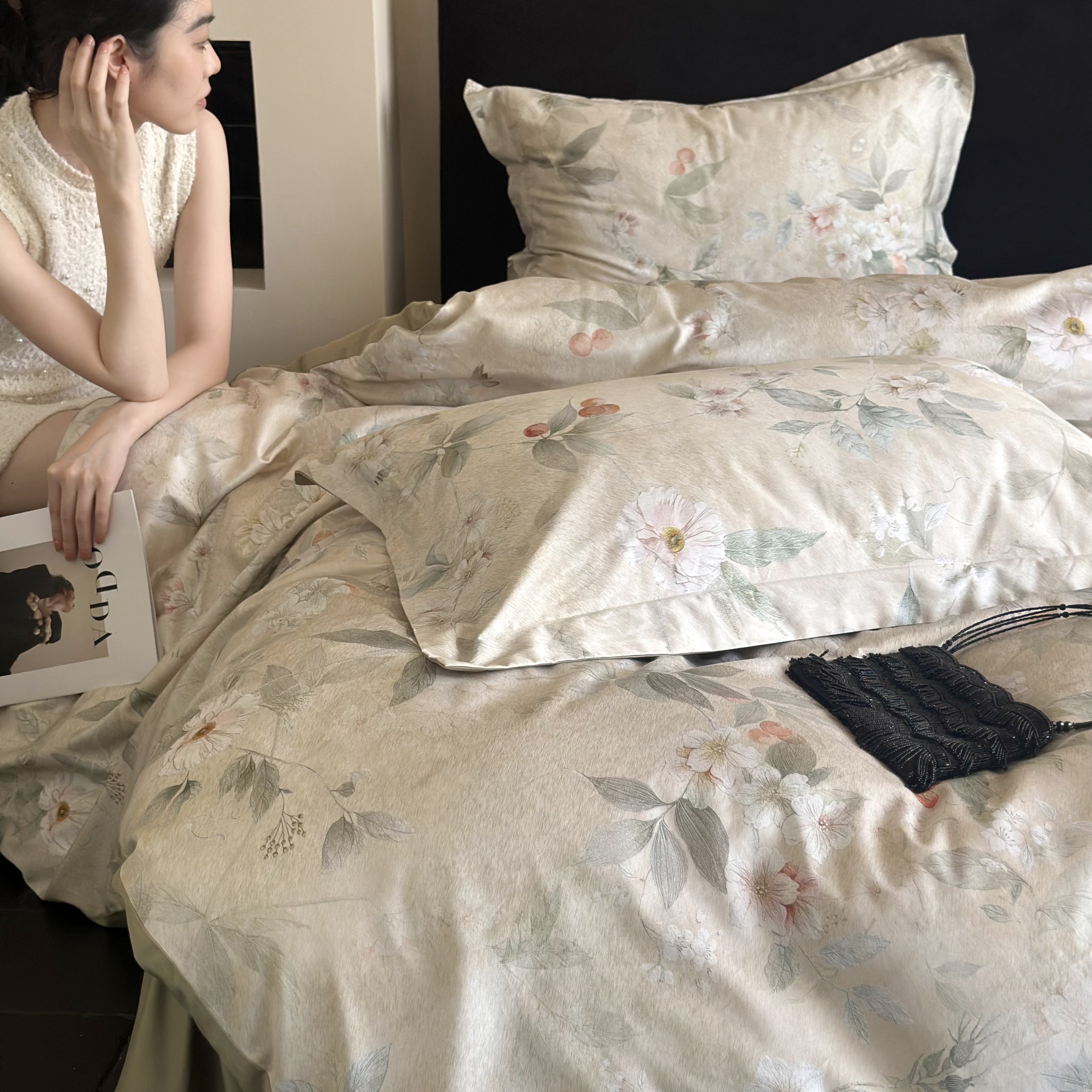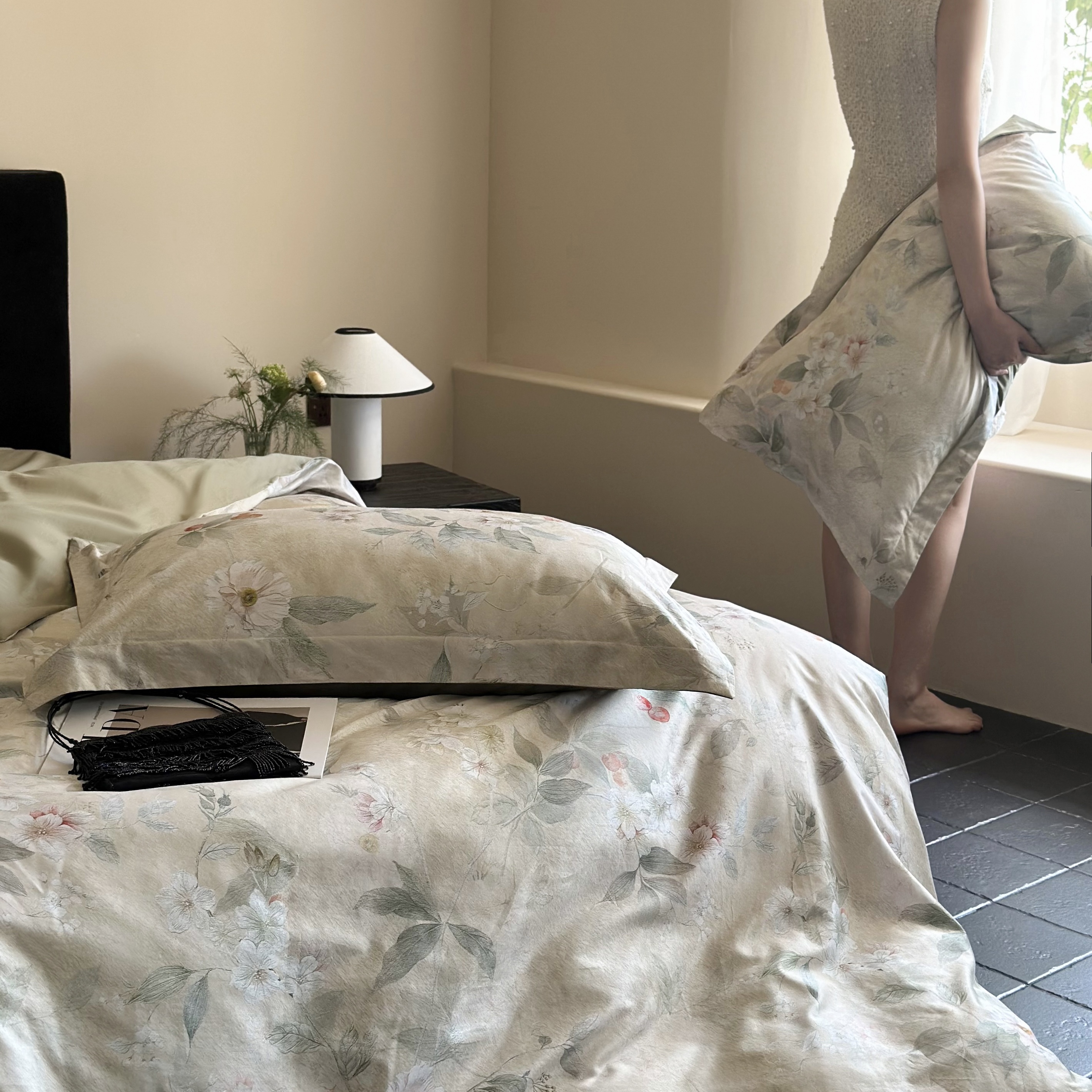 【品牌直发】加倍生活 60支兰精天丝数码印花四件套-细雨润青系列 2色可选