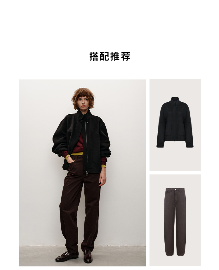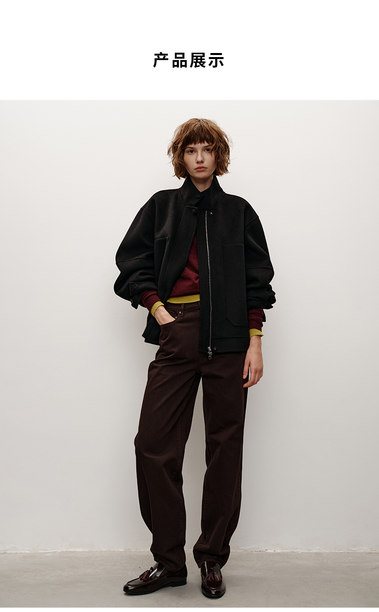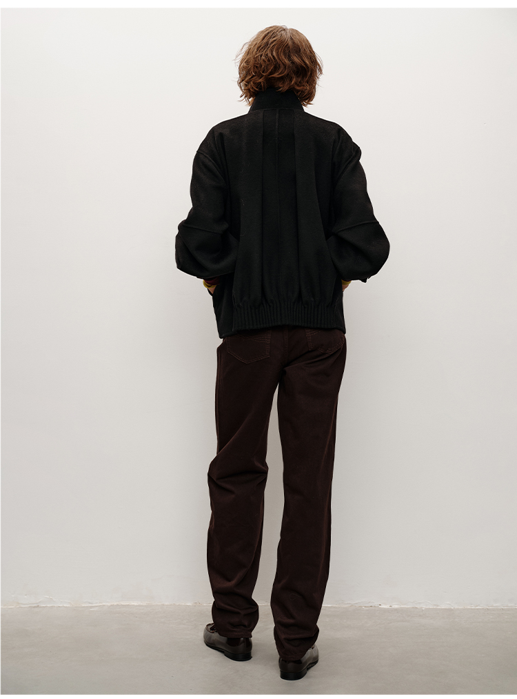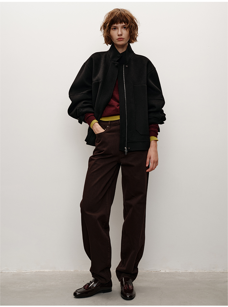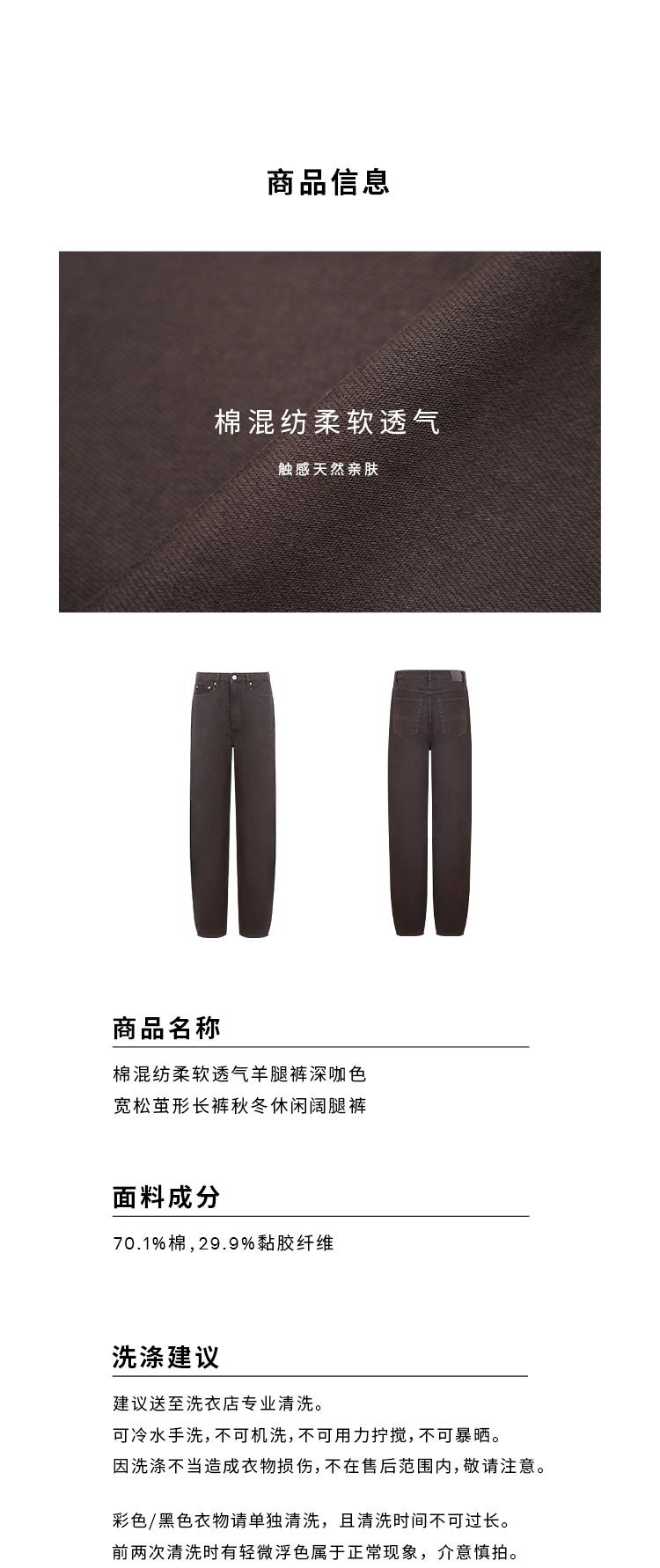 HIDEMI 柔软透气自然棉混纺羊腿裤深咖色复古宽松茧形长裤牛仔裤