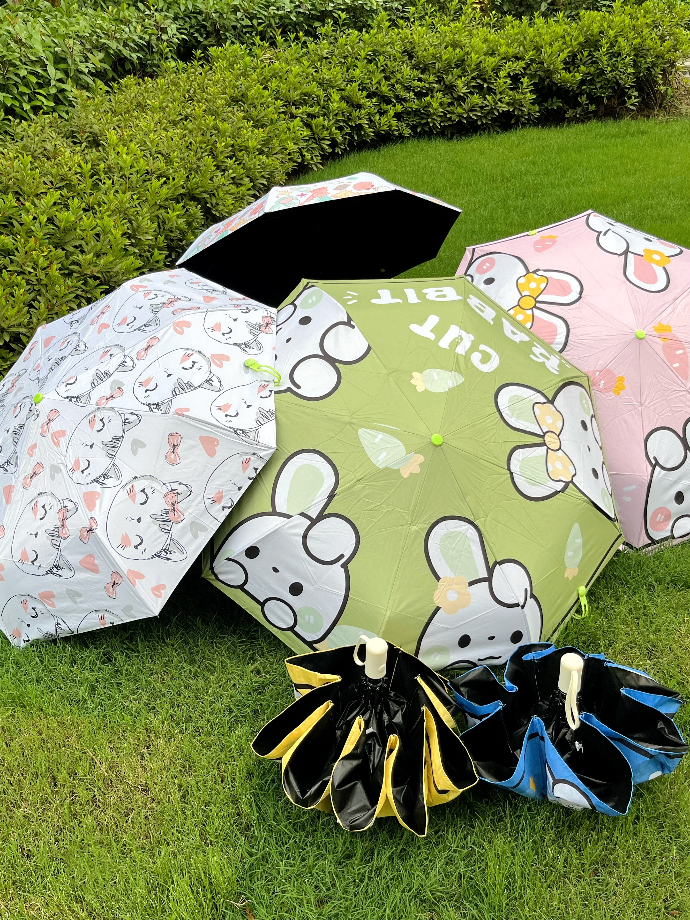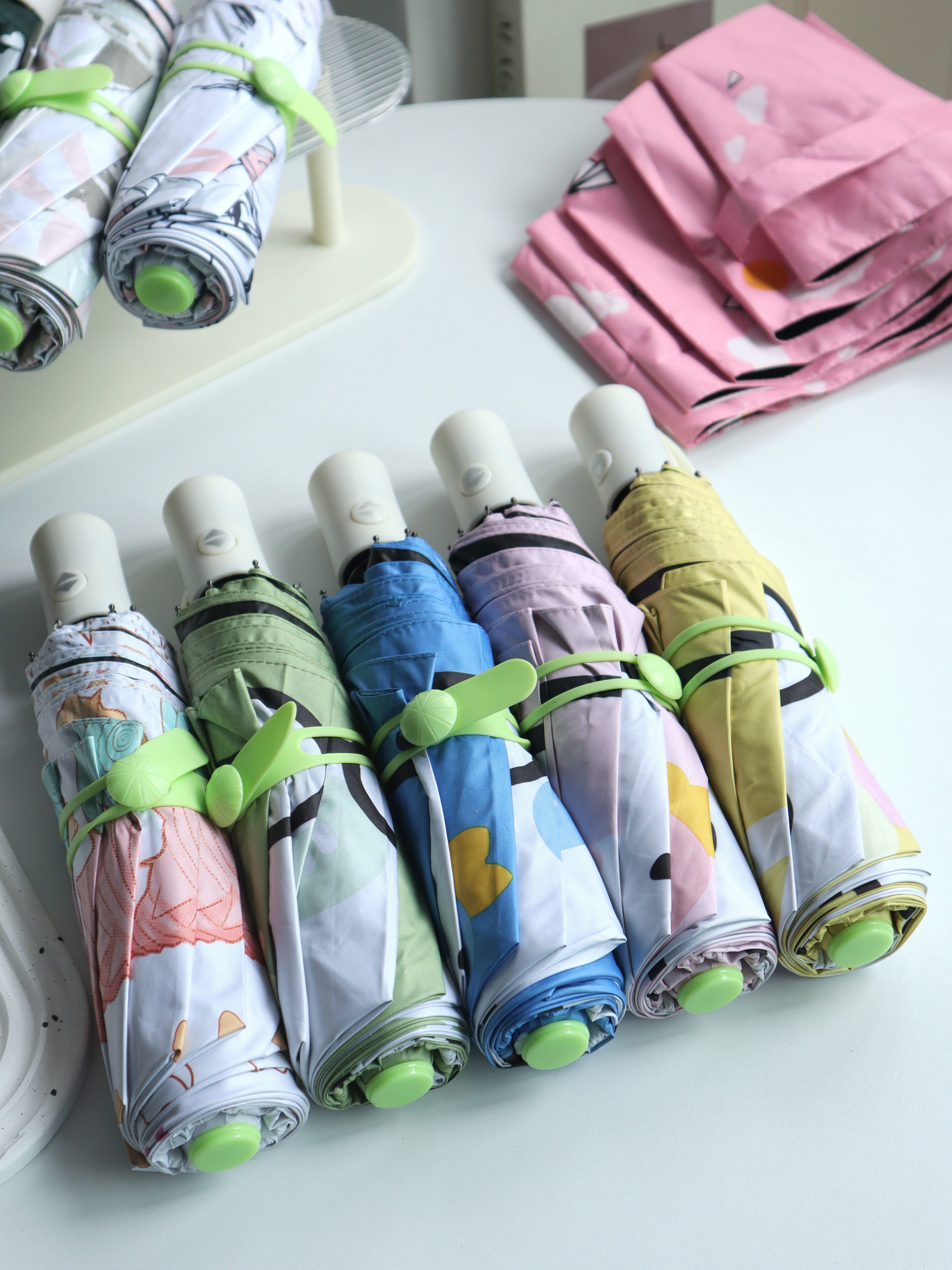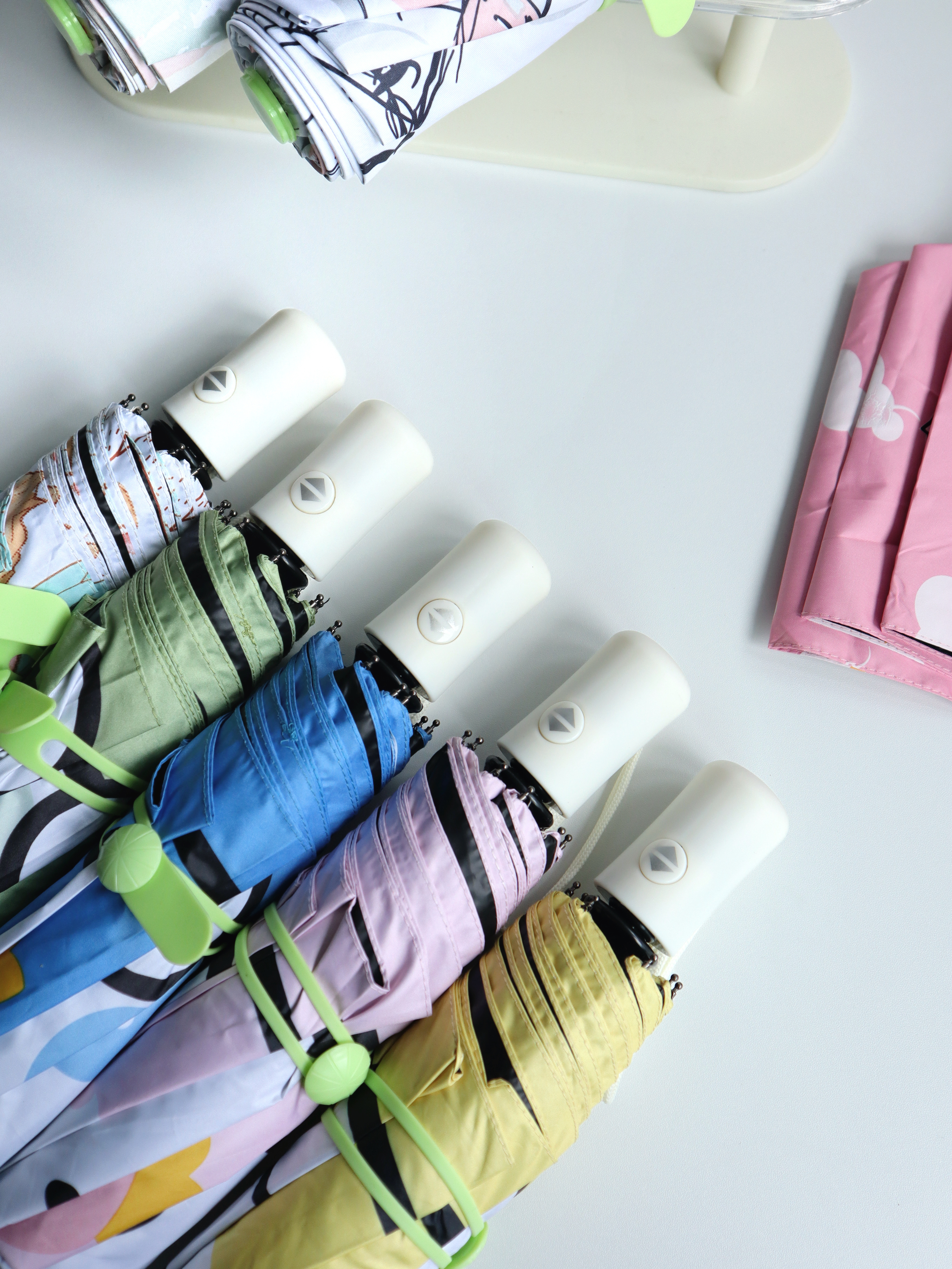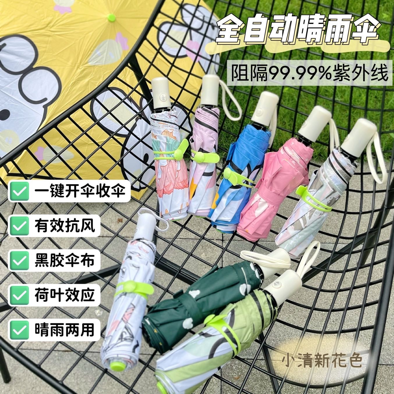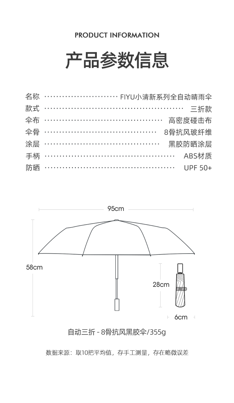 【一键开合 清新守护】FIYU小清新系列全自动晴雨伞 内层黑胶涂层 阻隔99.9%紫外线 荷叶拒水伞布 黑钢八骨伞架 晴雨两用 伞面直径95cm 约重355g