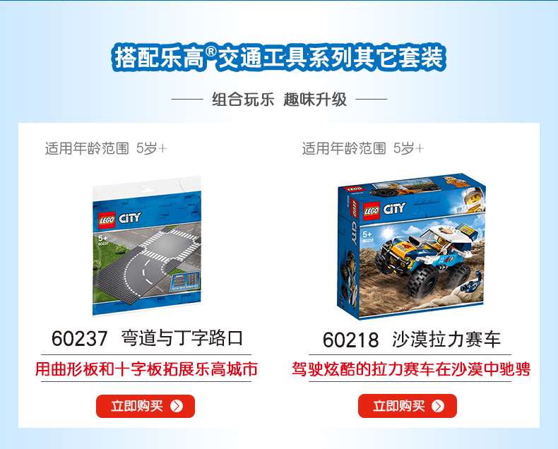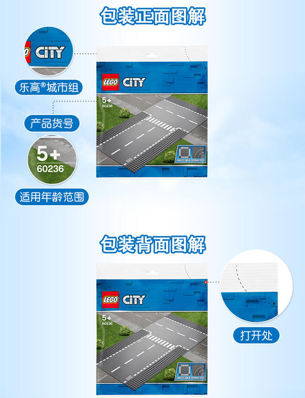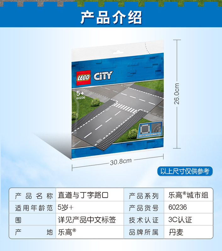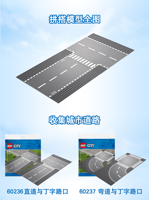 乐高 LEGO 直道与丁字路口 LEGC60236 City Train 适用年龄3Y-6Y 拼插积木益智玩具