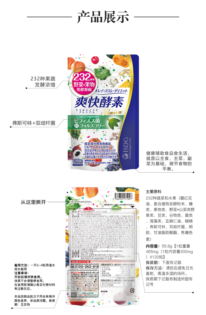 【品牌直营】ISDG 日本进口爽快酵素 232种植物果蔬酵素胶囊 120粒/袋 效期2027-03-05