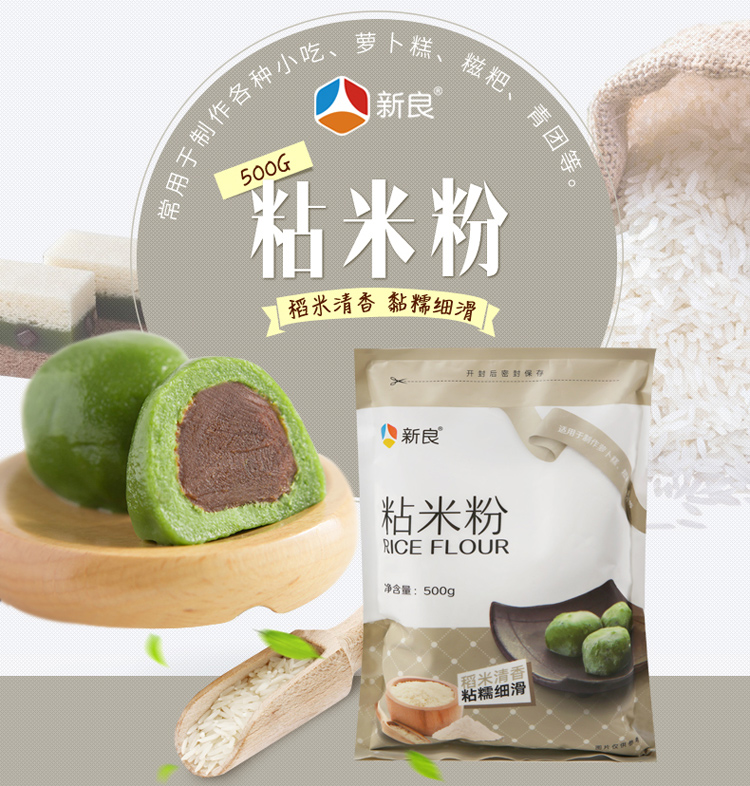 新良水磨粘米粉冰皮月饼汤圆糍粑肠粉专用粉青团年糕烘焙原料500g