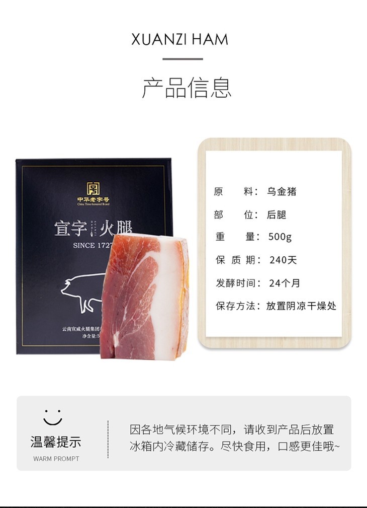 宣字洞藏纯香火腿块 500g 【BC】【包邮直发】