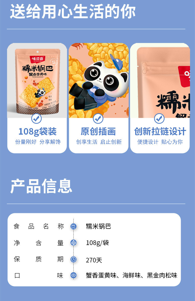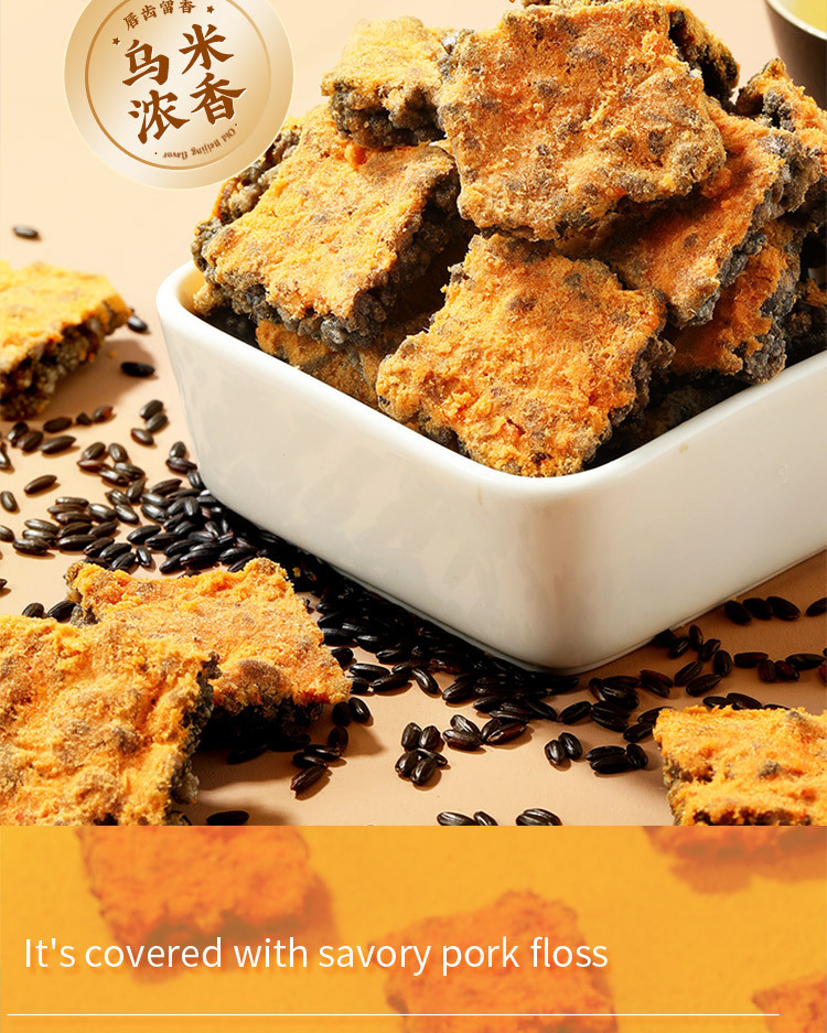 【料多味浓!网红黑金锅巴】酥脆入口咸香回味,嘎嘣脆下午茶常备糯米锅巴108g蟹香蛋黄锅巴黑米肉松味休闲小吃健康好吃