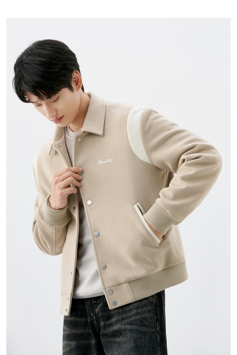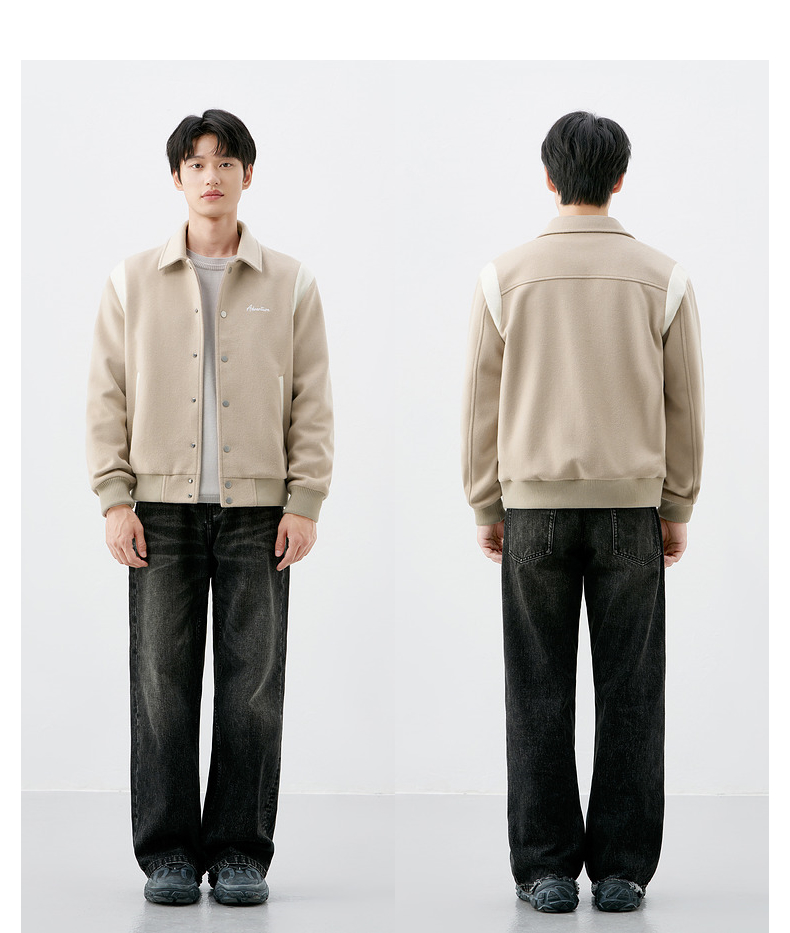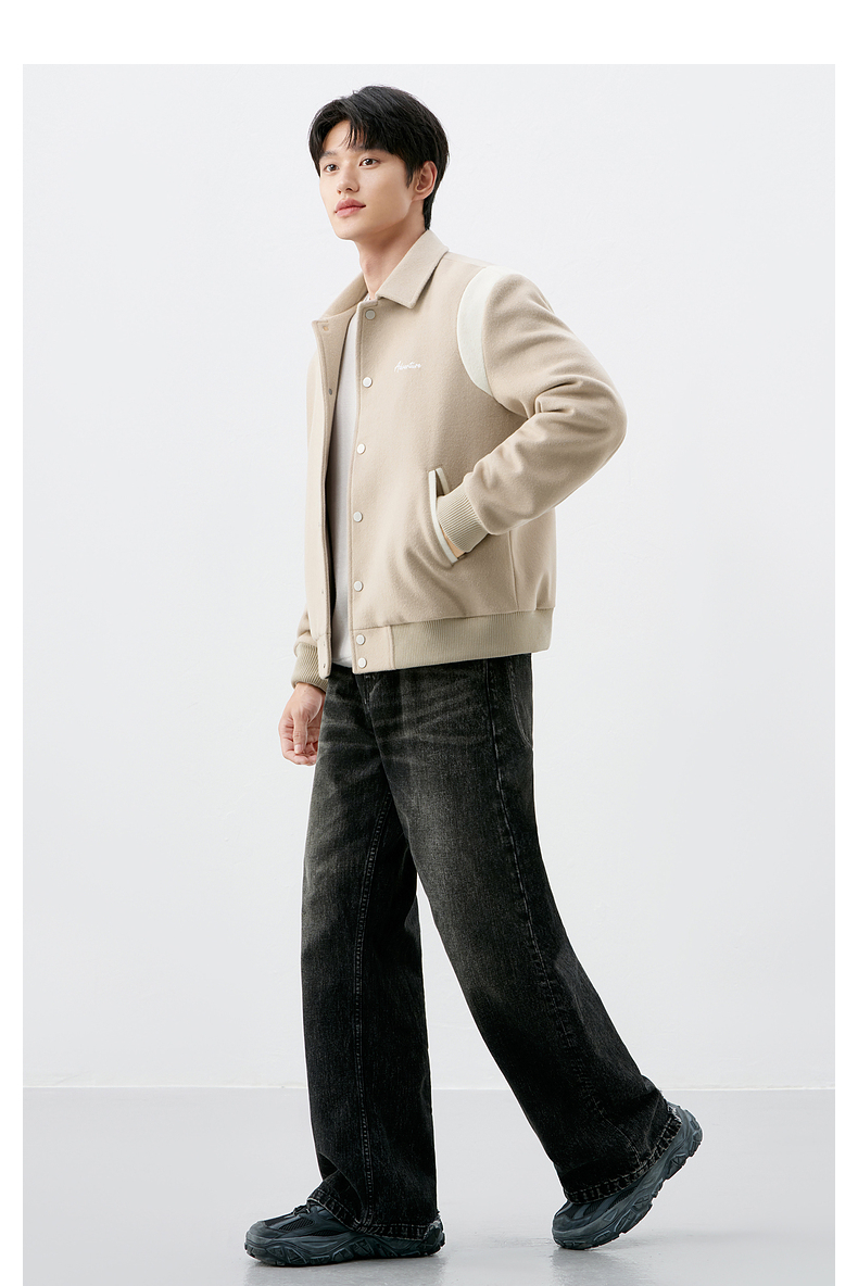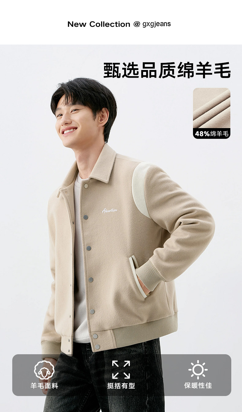 gxgjeans男装冬季毛呢夹克大衣翻领绵羊毛卡其色夹克外套男JED12100334