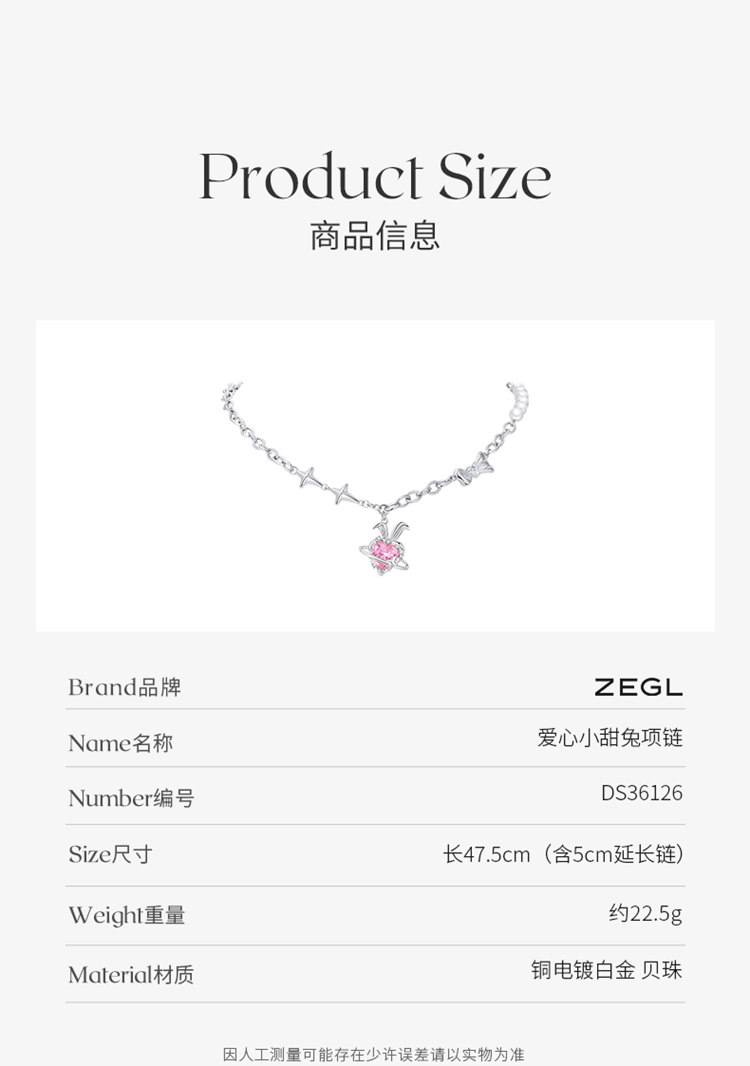 ZEGL设计师小甜兔系列爱心兔子项链女生轻奢小众锁骨毛衣链配饰品