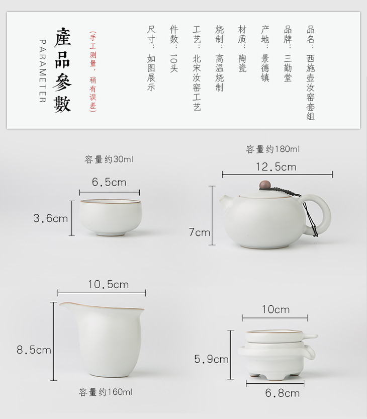 汝窑功夫茶具套装.汝窑西施壶10头套装(天青)
