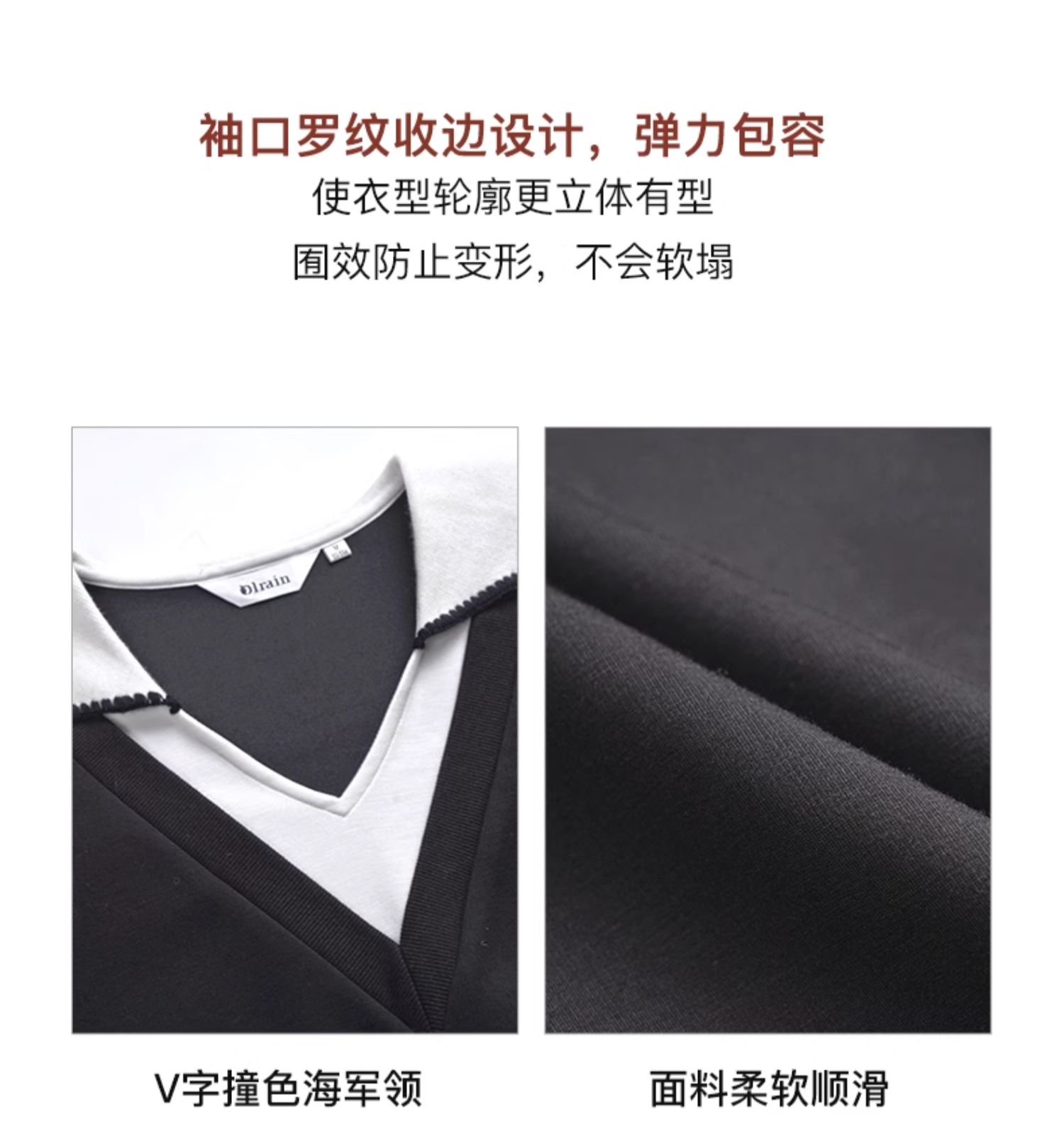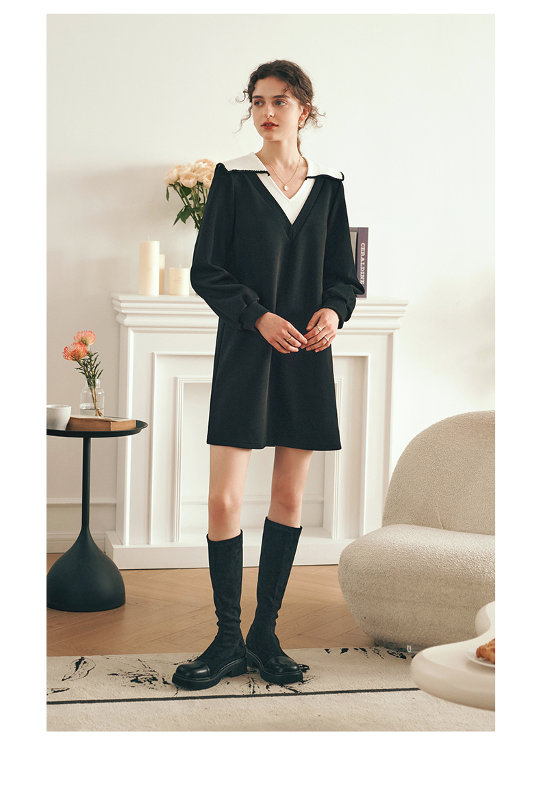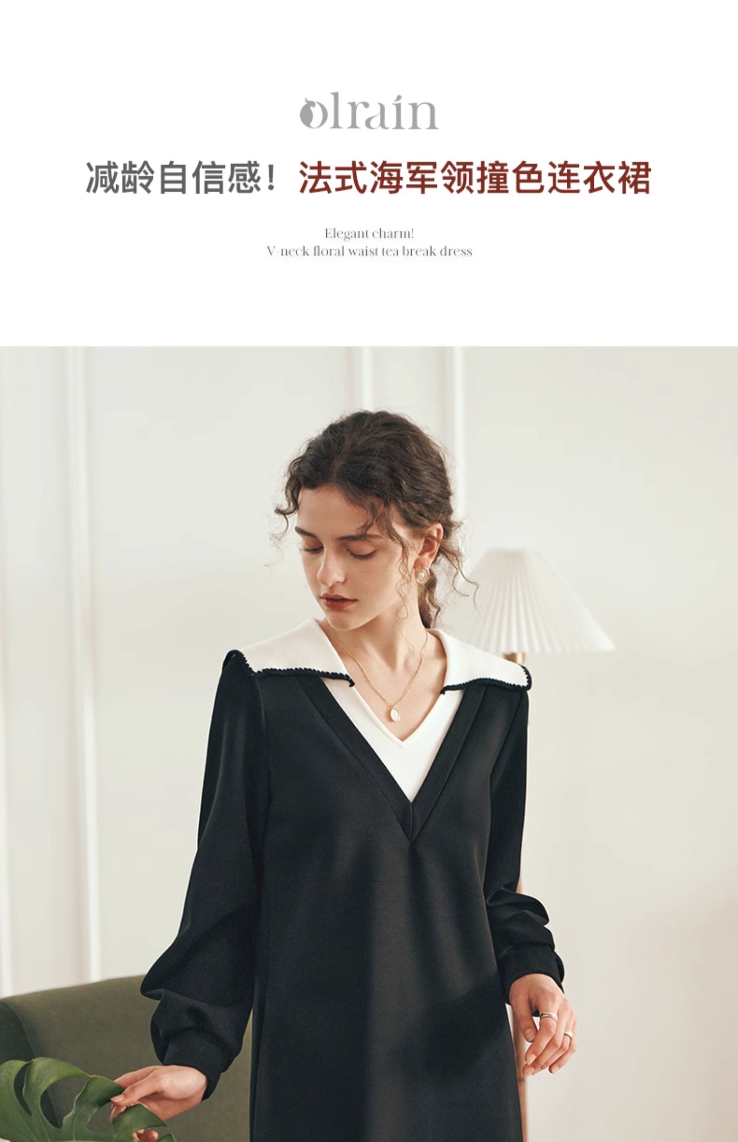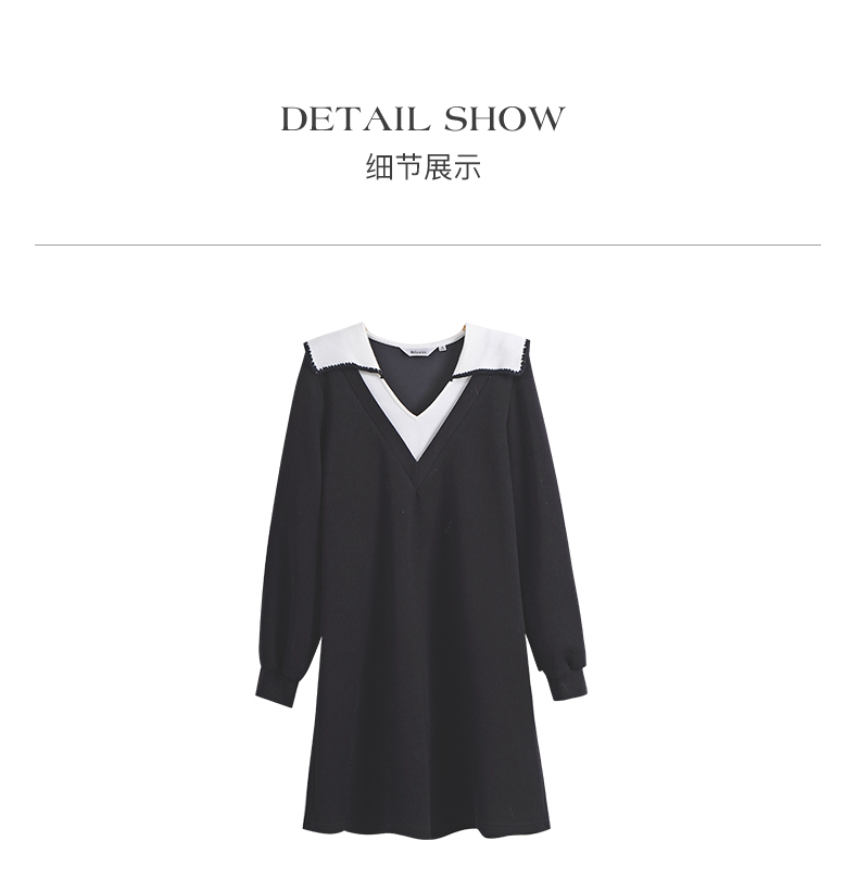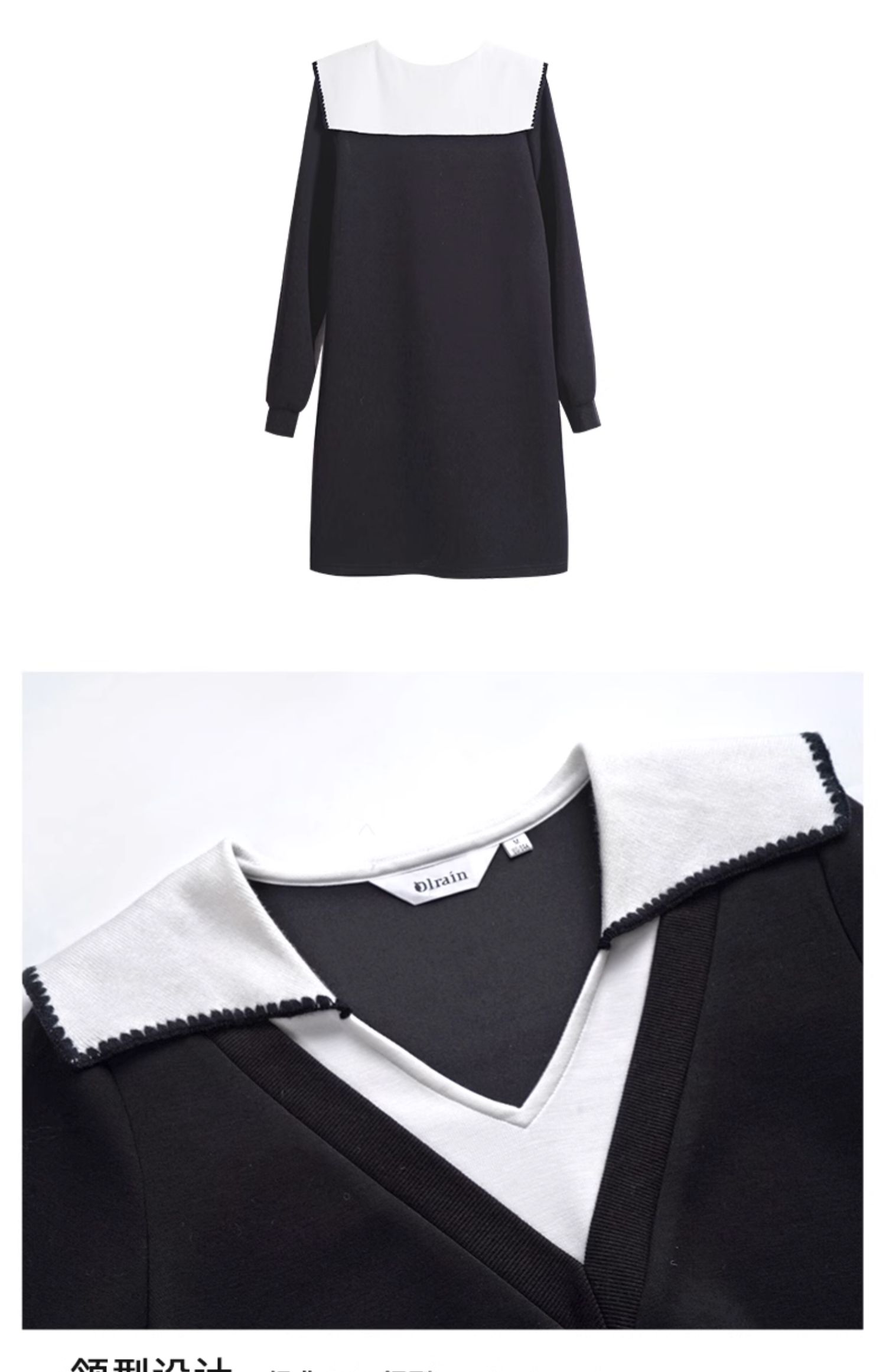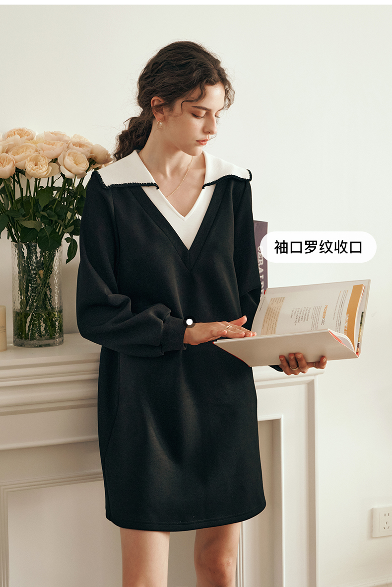 OLrain欧芮儿法式黑色连衣裙女春装2025年新款海军领撞色显瘦裙子