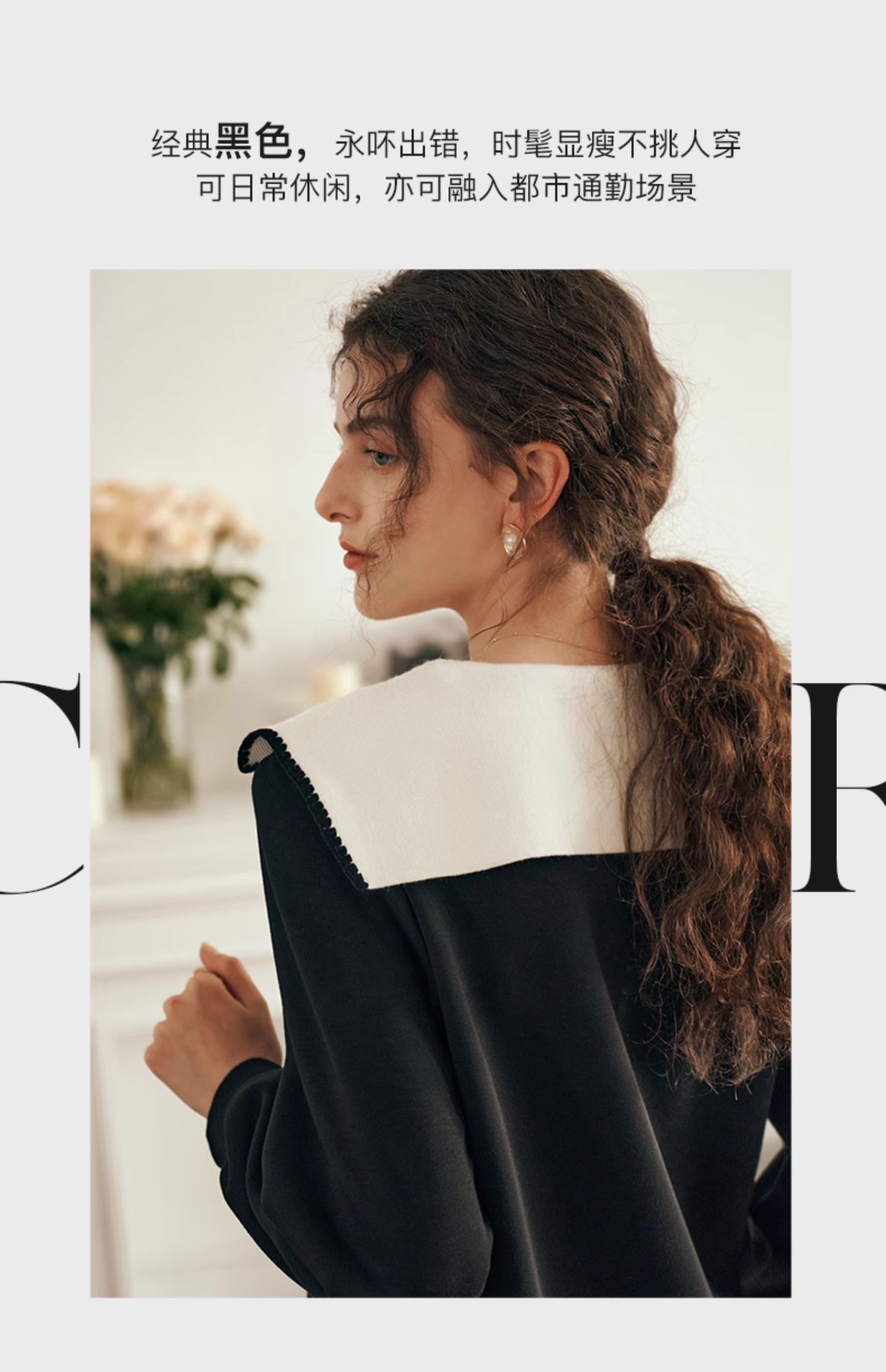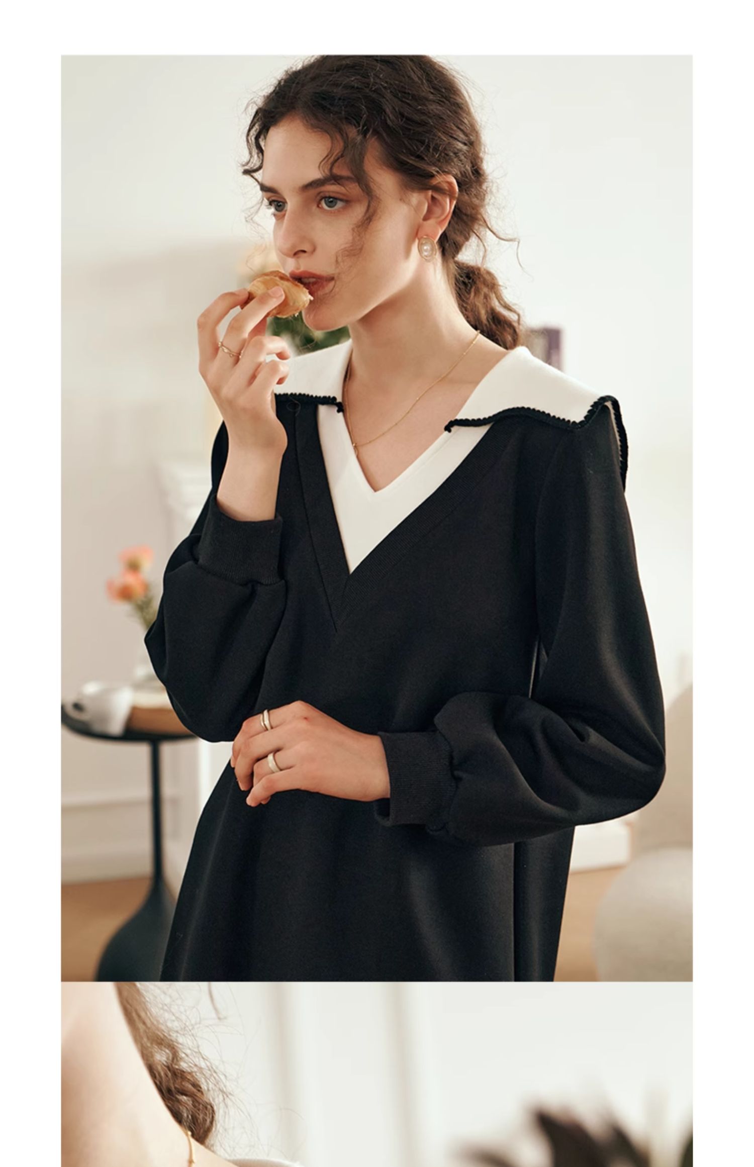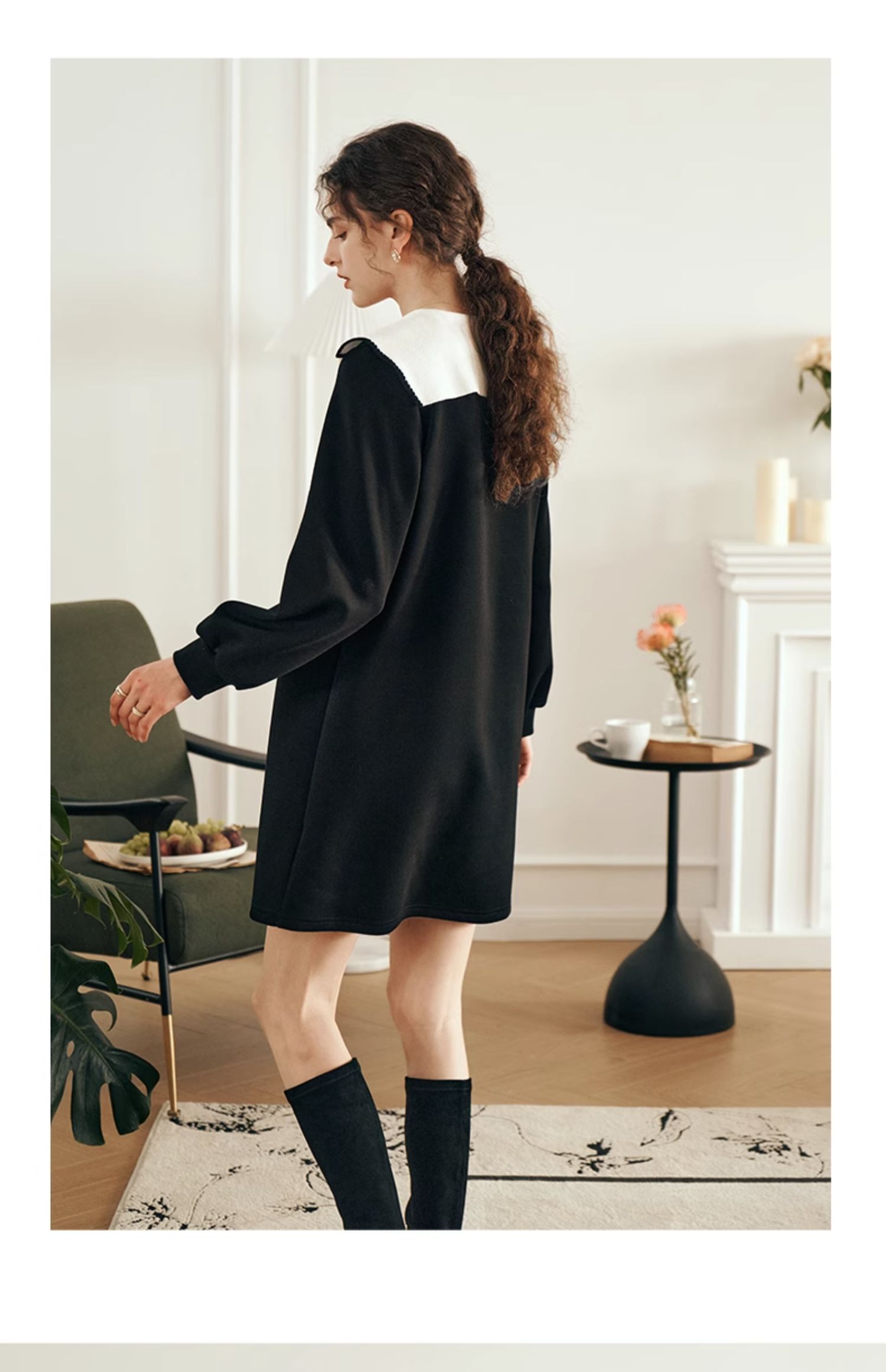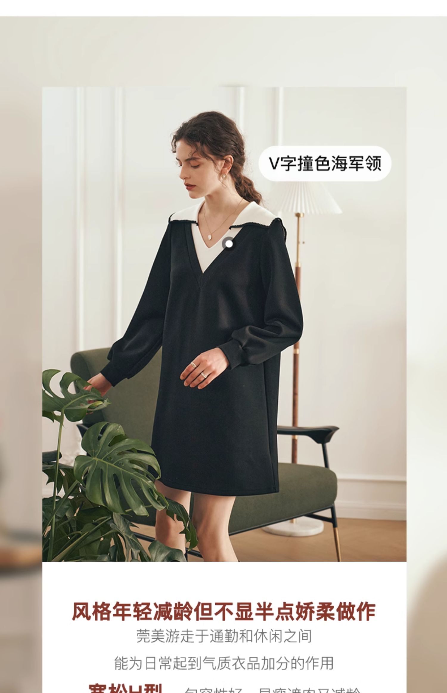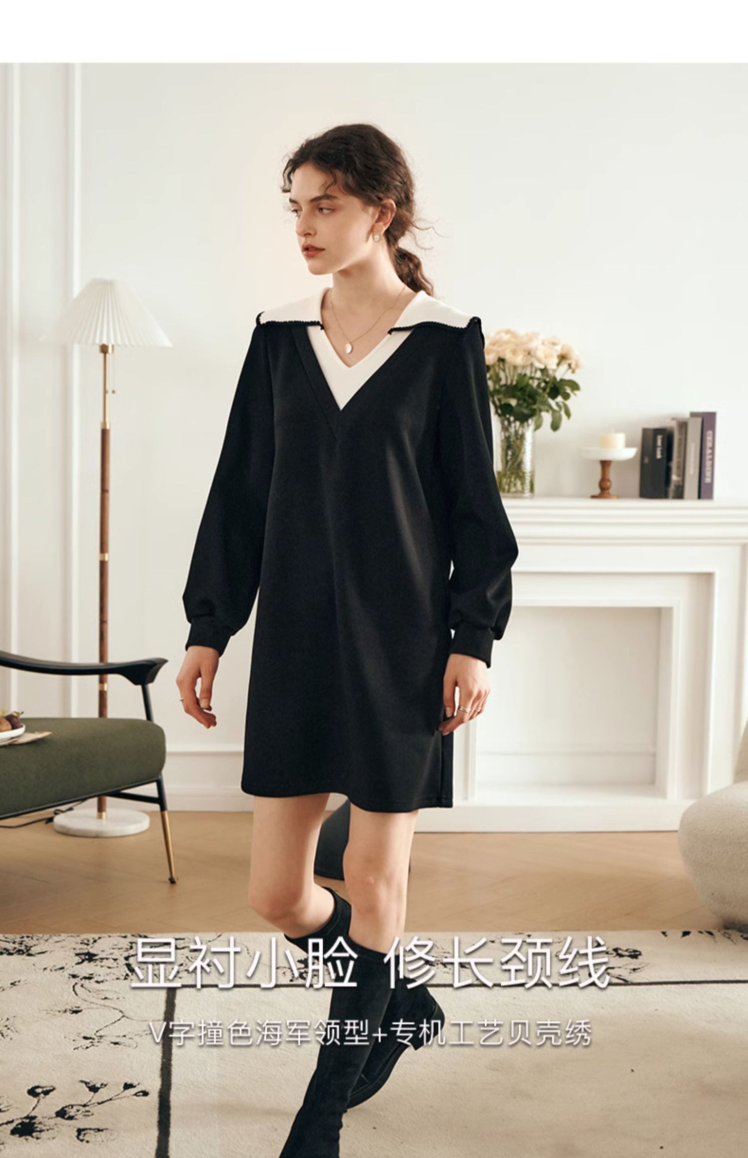 OLrain欧芮儿法式黑色连衣裙女春装2025年新款海军领撞色显瘦裙子