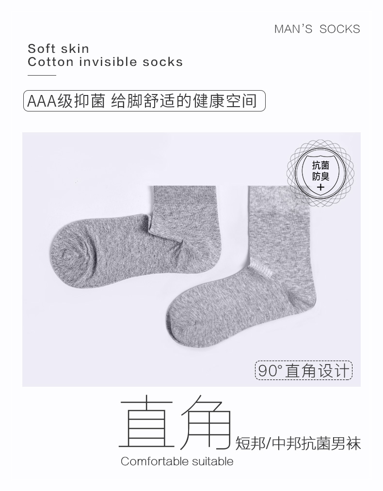 5双79.5元 22秋新品男士90度直角袜短袜中邦防臭棉袜抗菌短邦男袜
