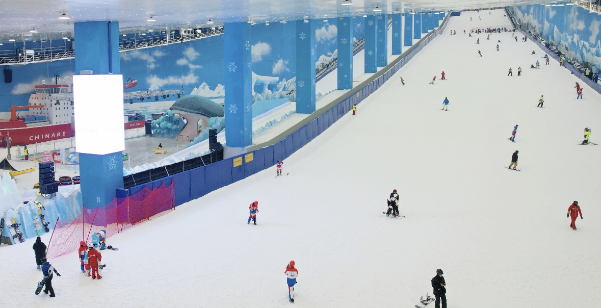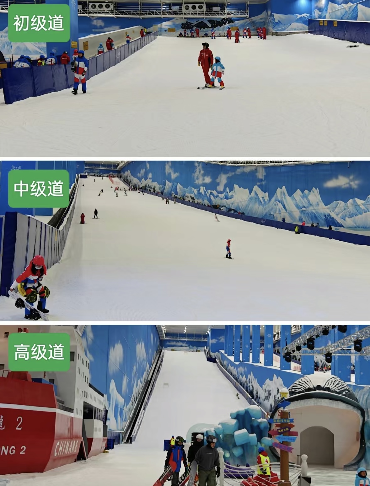 咸宁际华园滑雪场共有三条雪道,初级道88m,中级道280m,高级道200m,满足不同阶段的滑雪人。