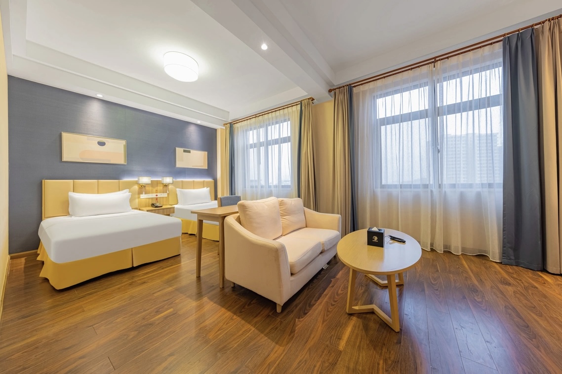 绿地康养居酒店位于咸宁北高铁站330米步行约5分钟,交通便利,酒店一楼设有康养中心,为各类住店顾客提供养生,调理,膳食及保健服务。二楼设有健身房,设施多样,能让顾客在住店之余,更好的放松身心。