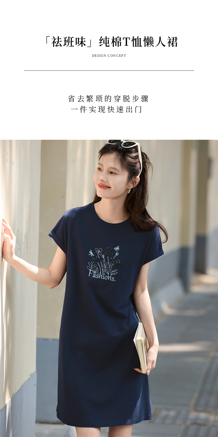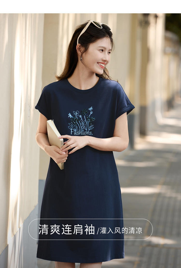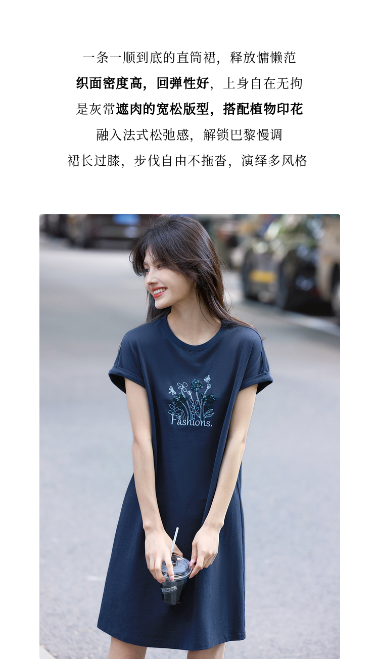 【专属特价】熙世界休闲花卉印花T恤裙女夏2025新款气质宽松休闲懒人裙连衣裙