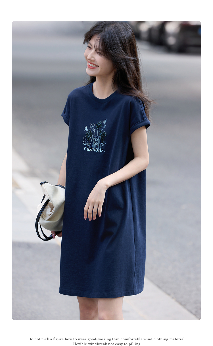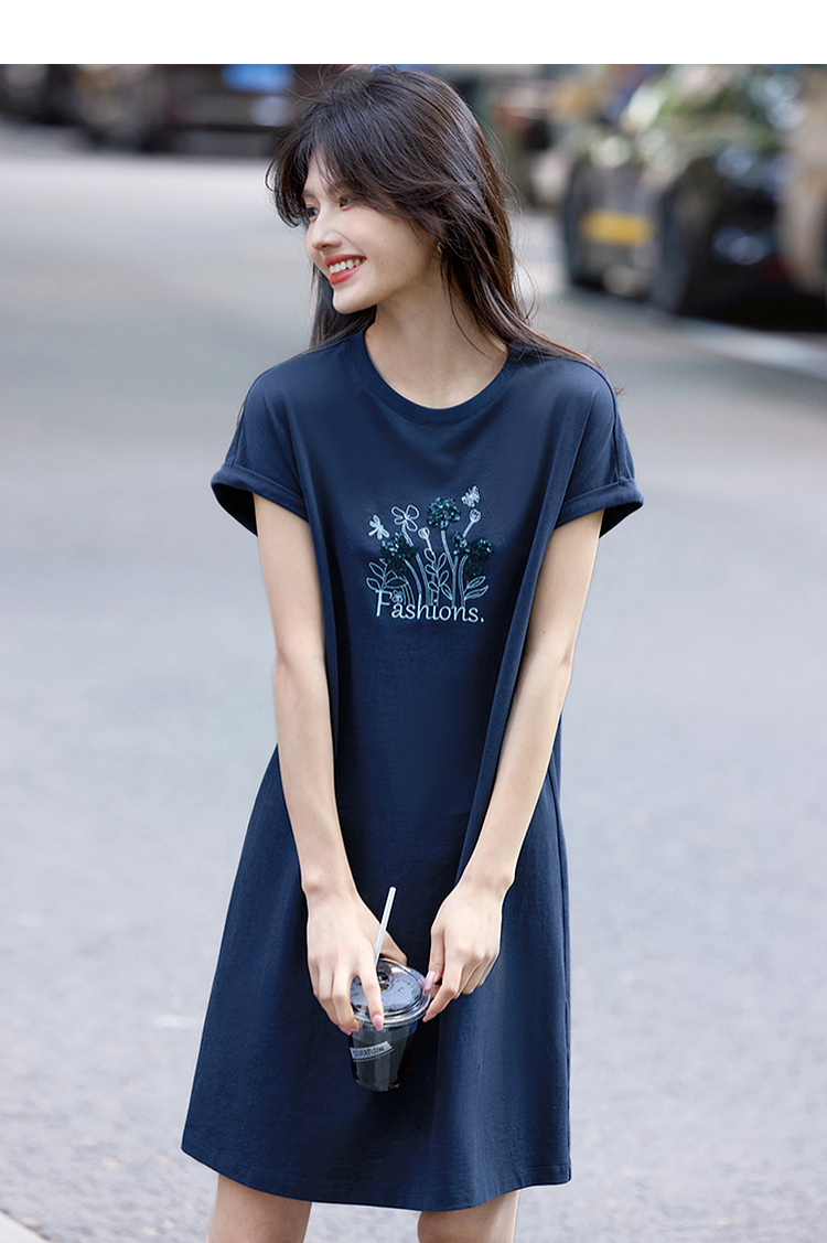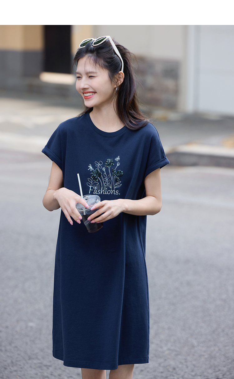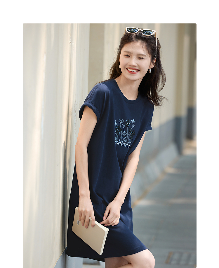 【专属特价】熙世界休闲花卉印花T恤裙女夏2025新款气质宽松休闲懒人裙连衣裙