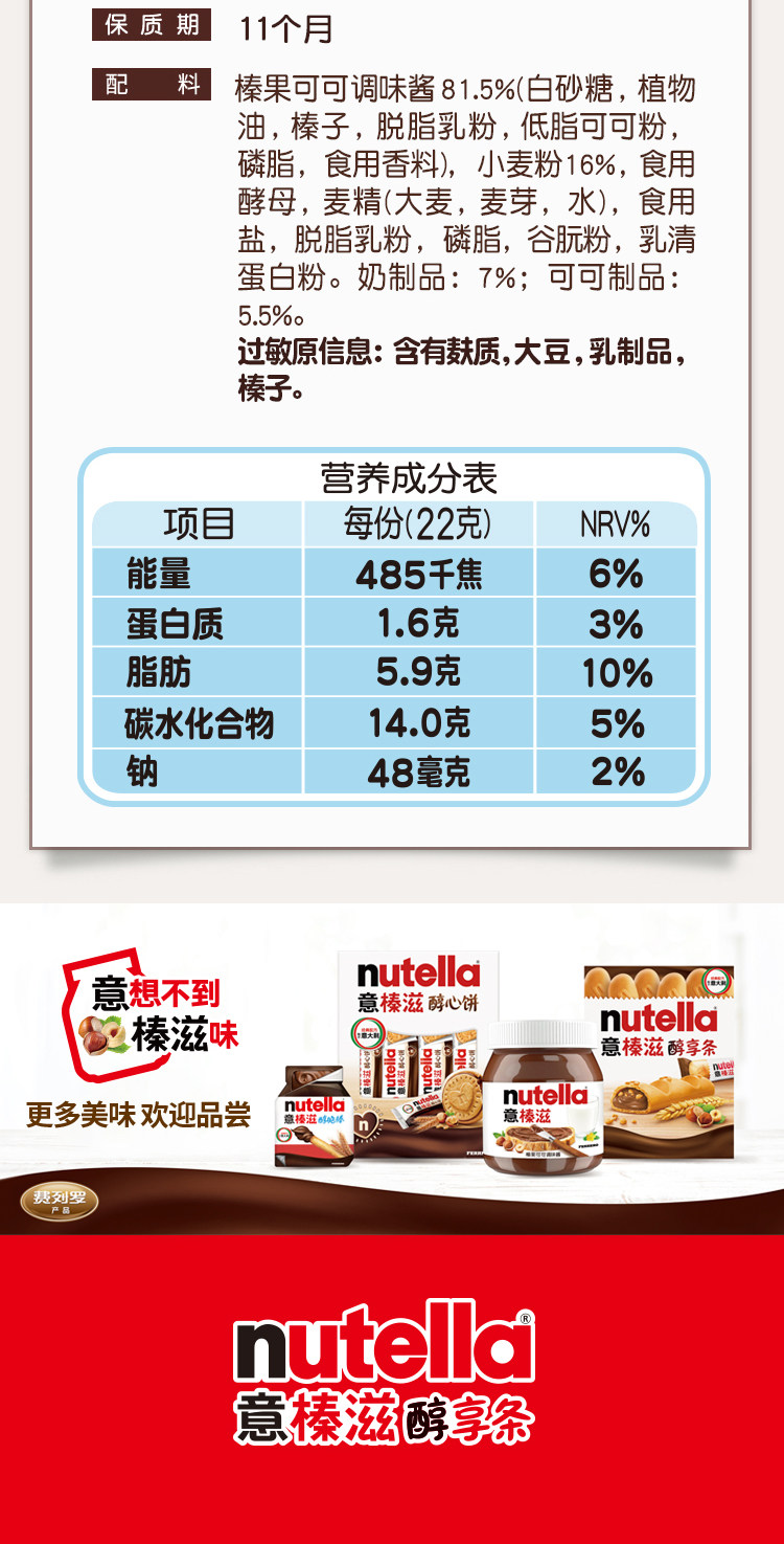 意榛滋醇享条榛果可可调味酱注心饼干 132g