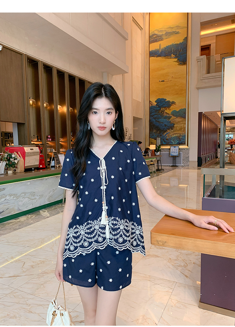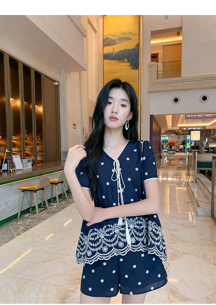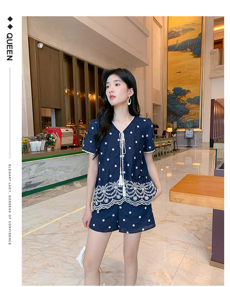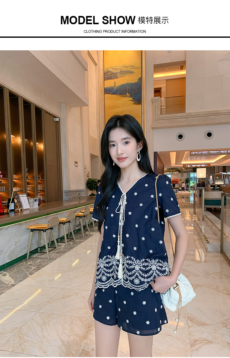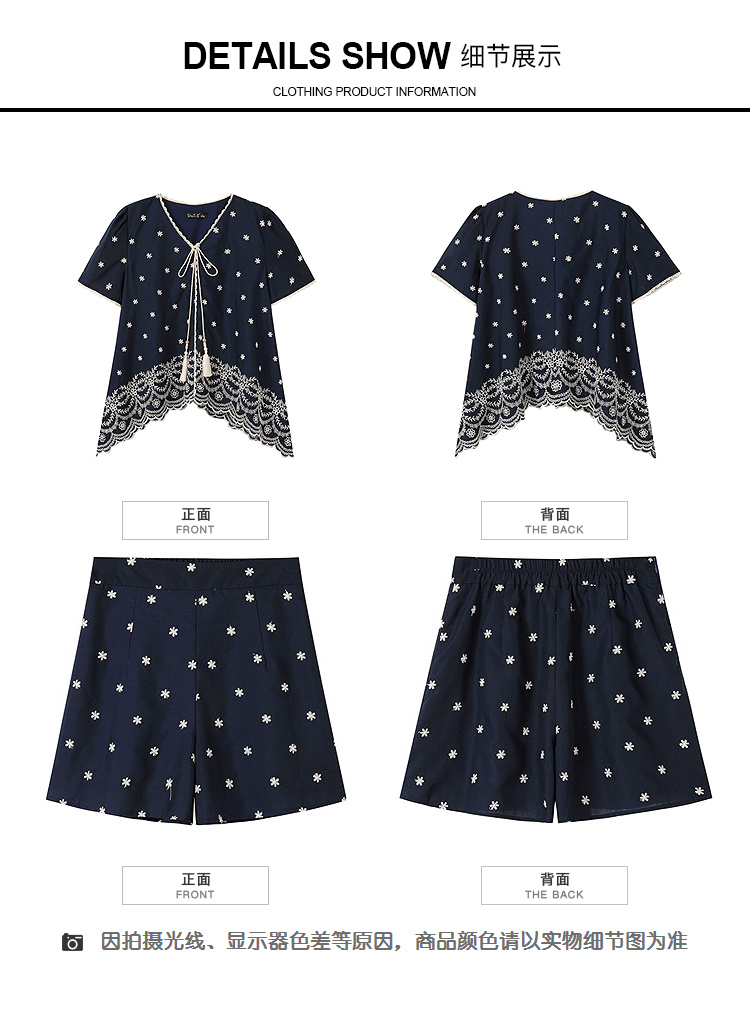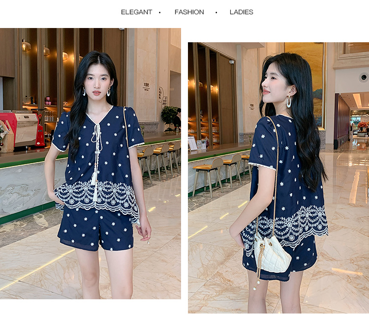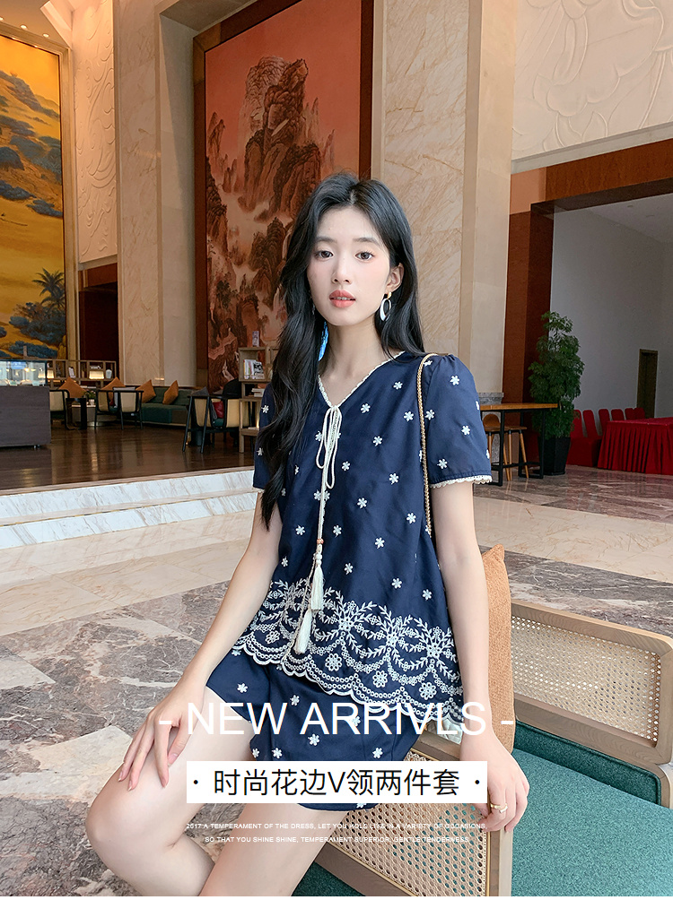 奢姿大码女装2025夏季减龄花边刺绣设计V领两件套胖妹妹时尚套装9952969870