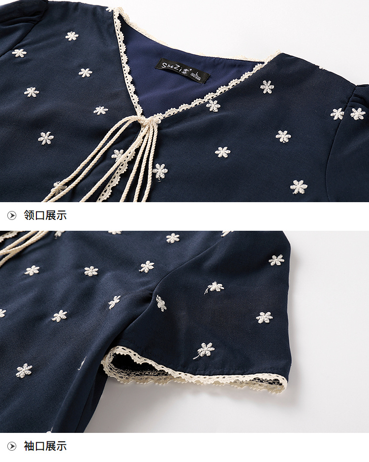 奢姿2026大码女装刺绣蕾丝连衣裙胖妹妹夏季方领遮肉温柔风A字裙9962860008
